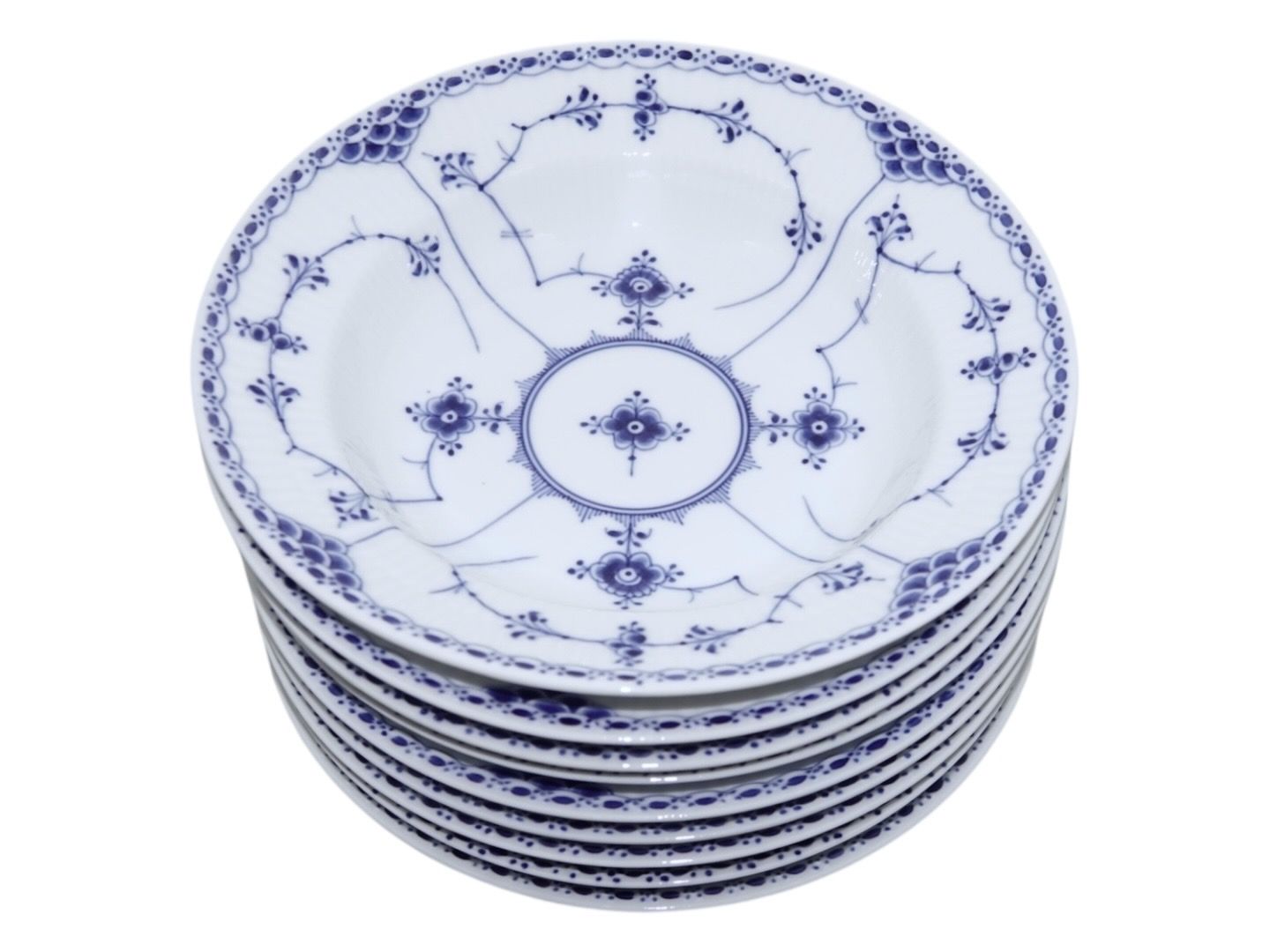Beskrivelse: Royal Copenhagen Musselmalet Halvblonde, dyb tallerken.
