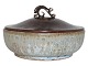 Beskrivelse: Arne Bang keramik, skål med en flot glasur samt originalt bronzelåg.