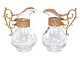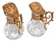 Beskrivelse: Et par små glaskander med bronze låg og dekoreret med henholdsvis et rødt og hvidt emalje kors.