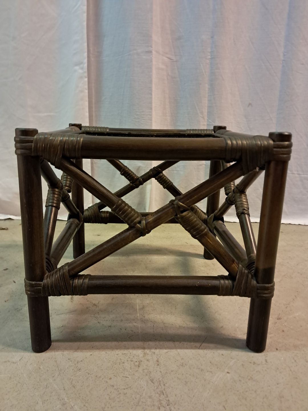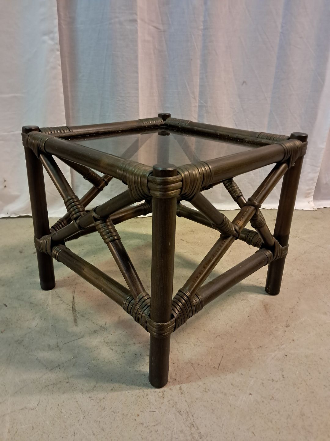 Beskrivelse: Lille bord i bambus med glasplade, fra 2000erne.