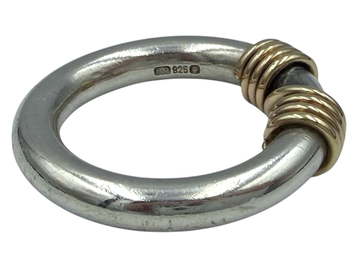 Beskrivelse: Sterlingsølv og 14 karat guld, ring med snoet guld.