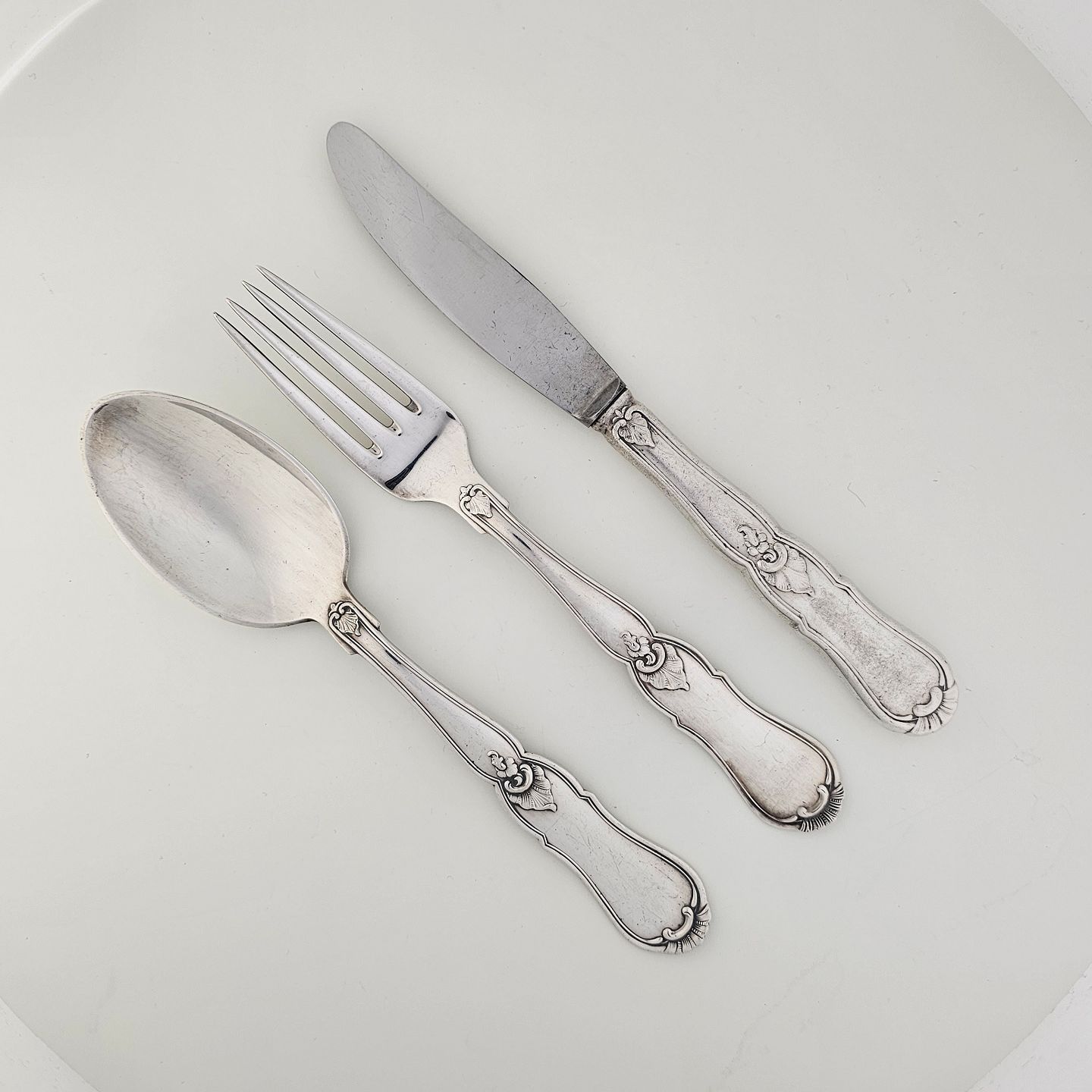 Beskrivelse: Bestik i sølvplet med bestikmønster Marianne