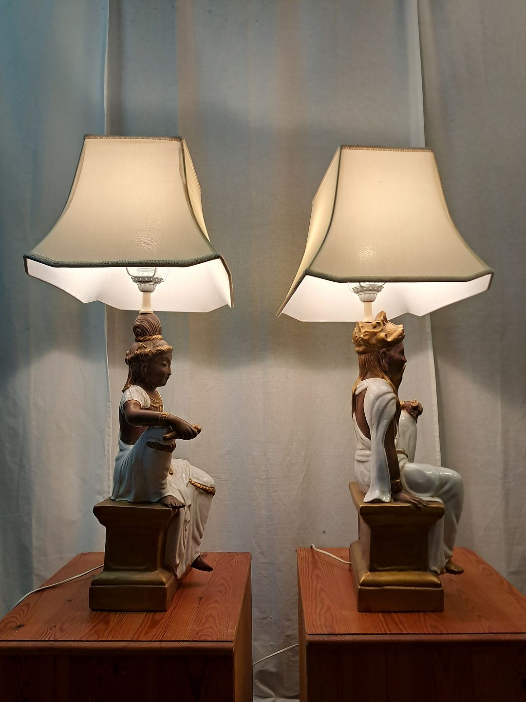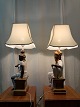 Beskrivelse: 2 Bordlamper i pocelæn med skærme, fra 2000erne.