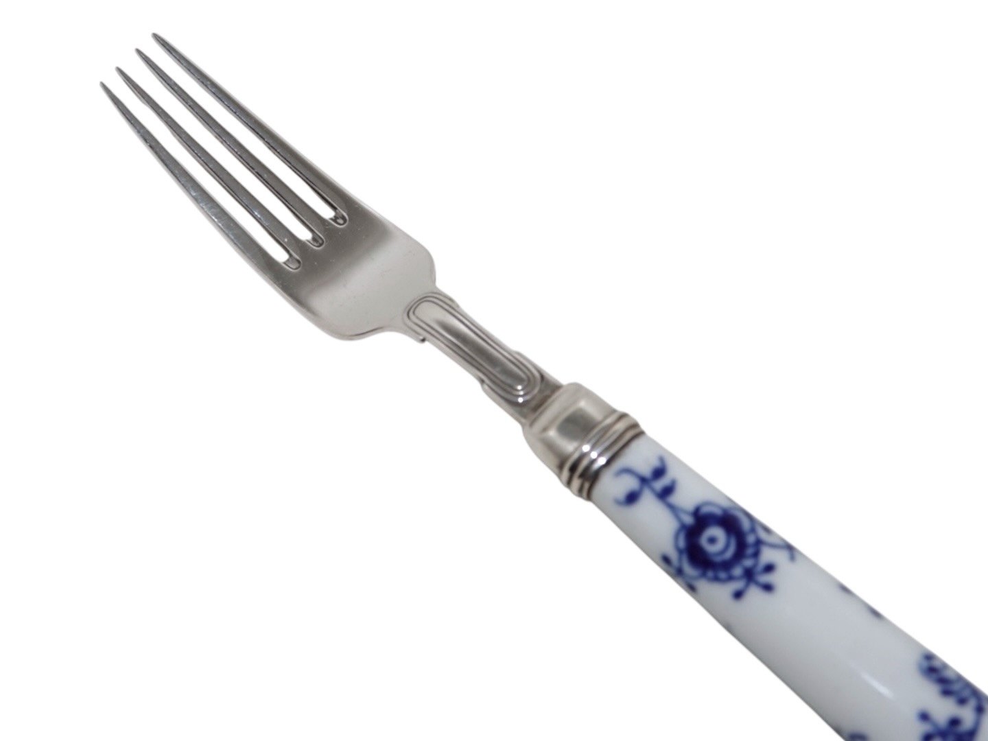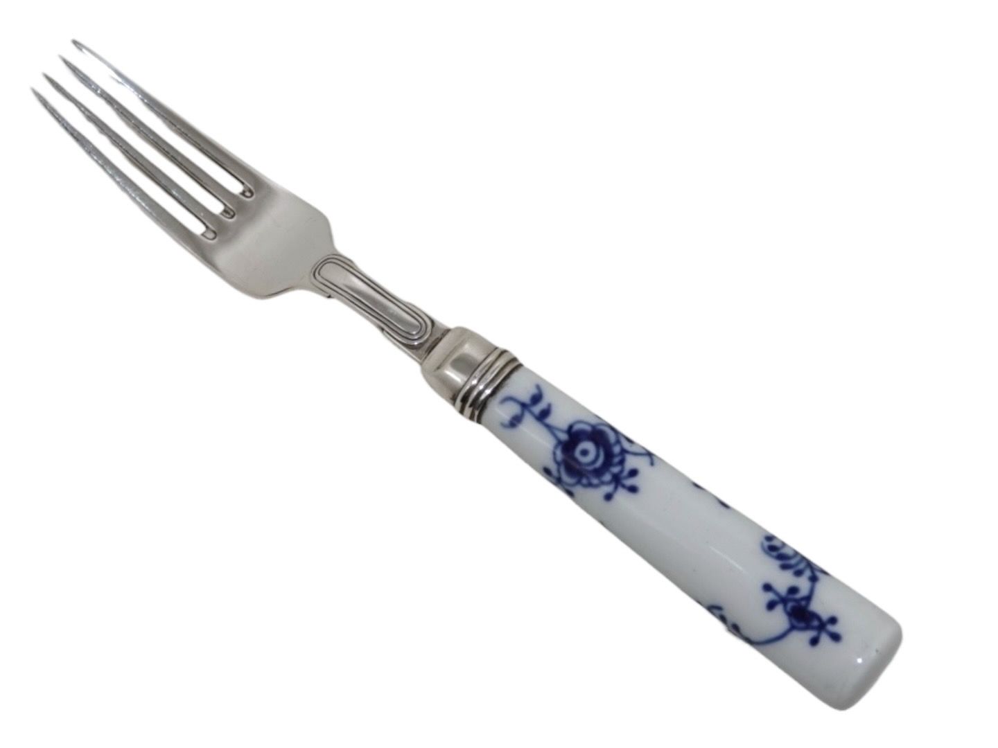 Beskrivelse: Royal Copenhagen Musselriflet Riflet, sjælden gaffel monteret med Anton Michelsen sterlingsølv.