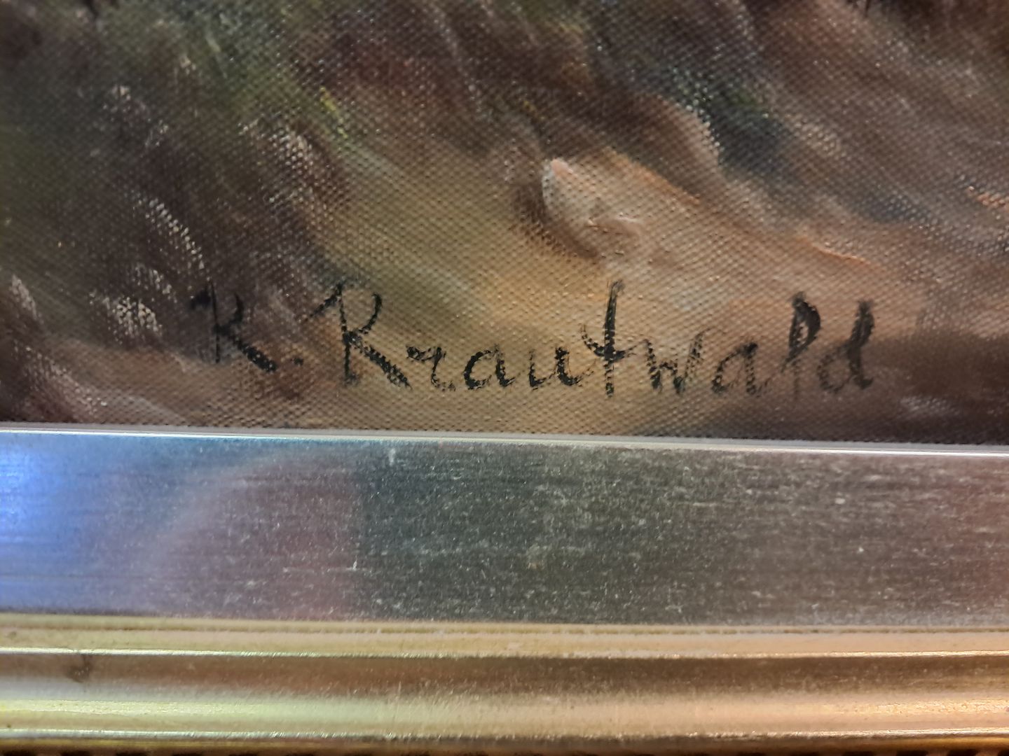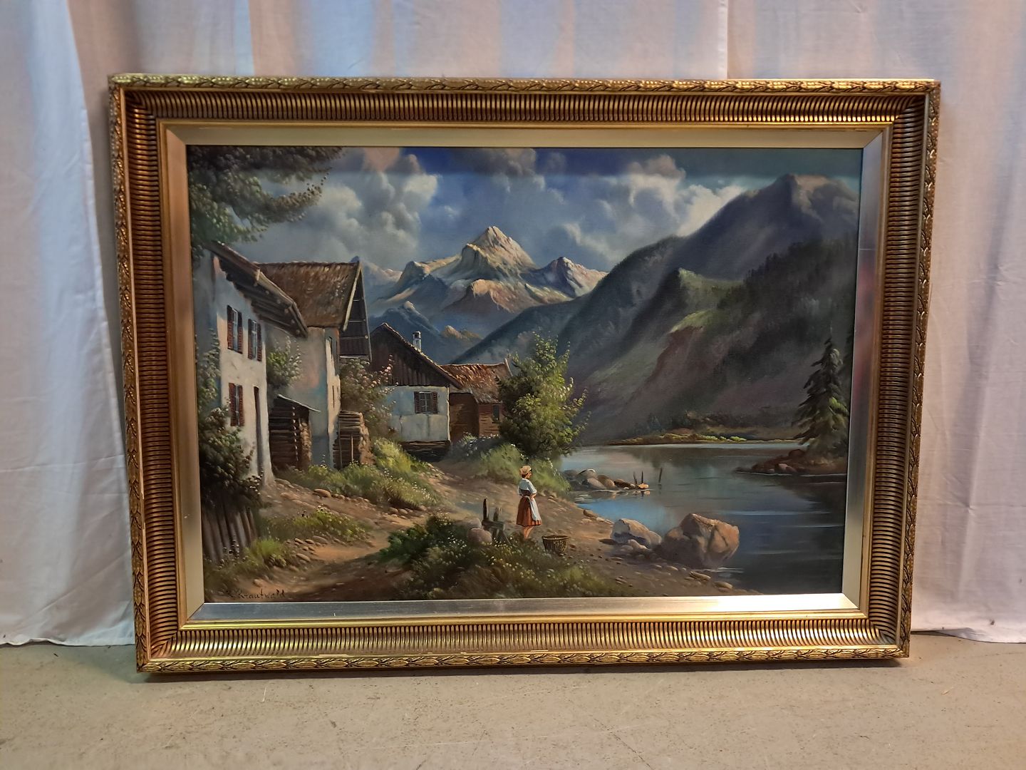 Beskrivelse: Maleri i guldmalet rammme, fra 1950erne.