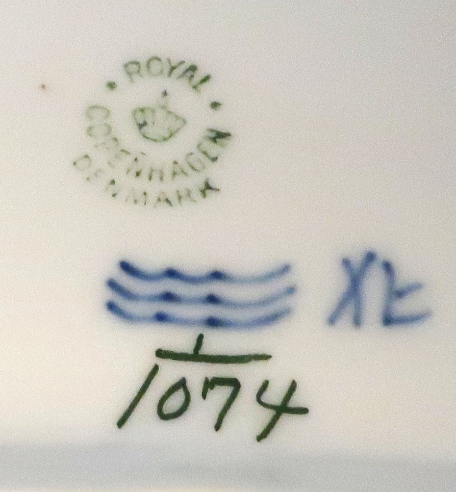 Beskrivelse: Royal Copenhagen. Musselmalet, helblonde. Asiet. Model 1074. Bredde 19 cm. (1 sortering)