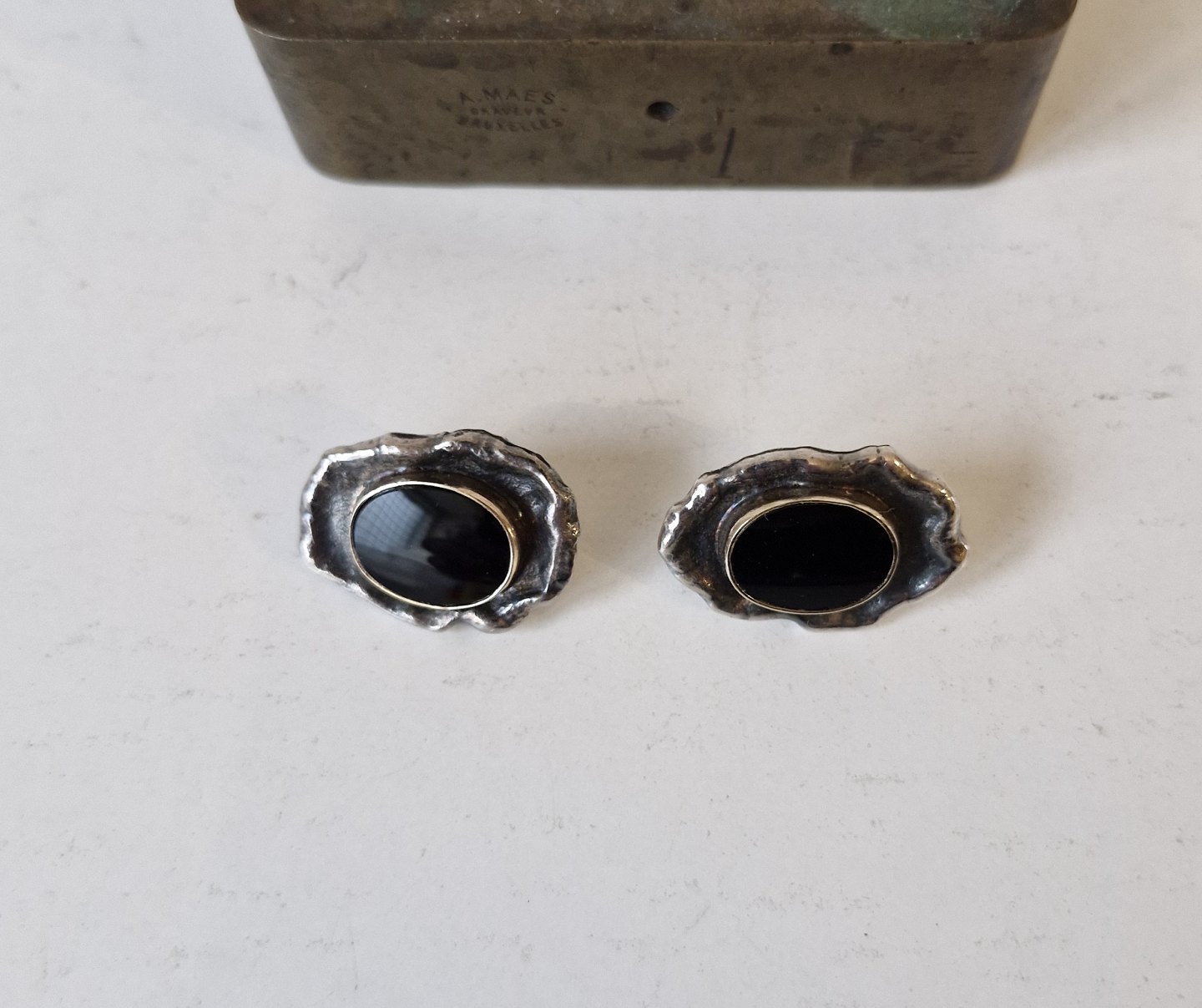 Beskrivelse: Par store ørestikker i sterlingsølv med onyx af Niels Gunni Vase