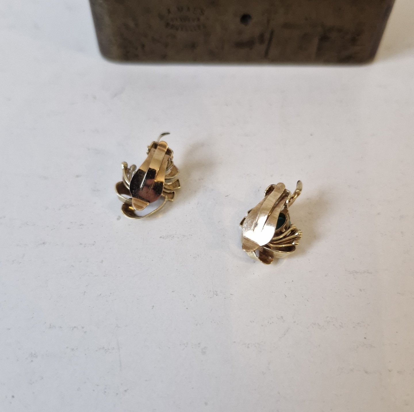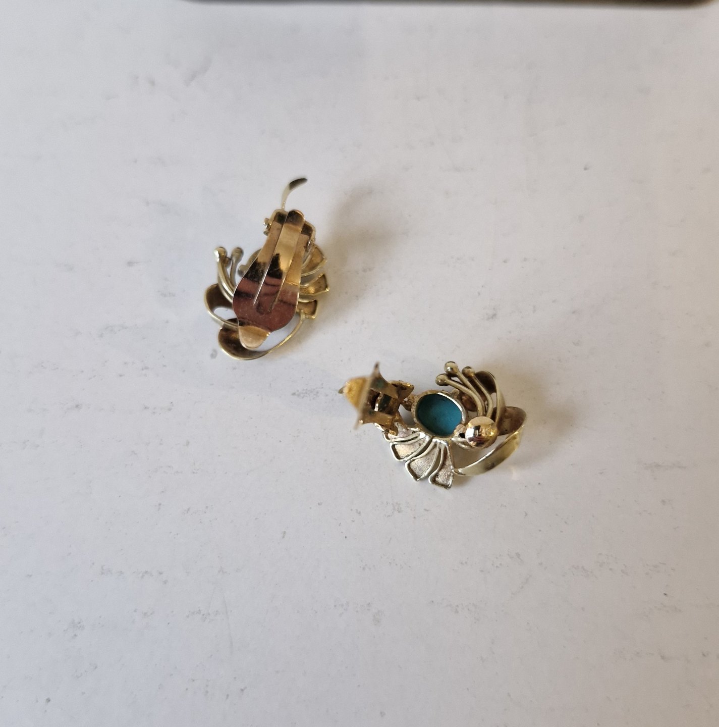 Par smukke øreklips i 14 kt guld med turkis
