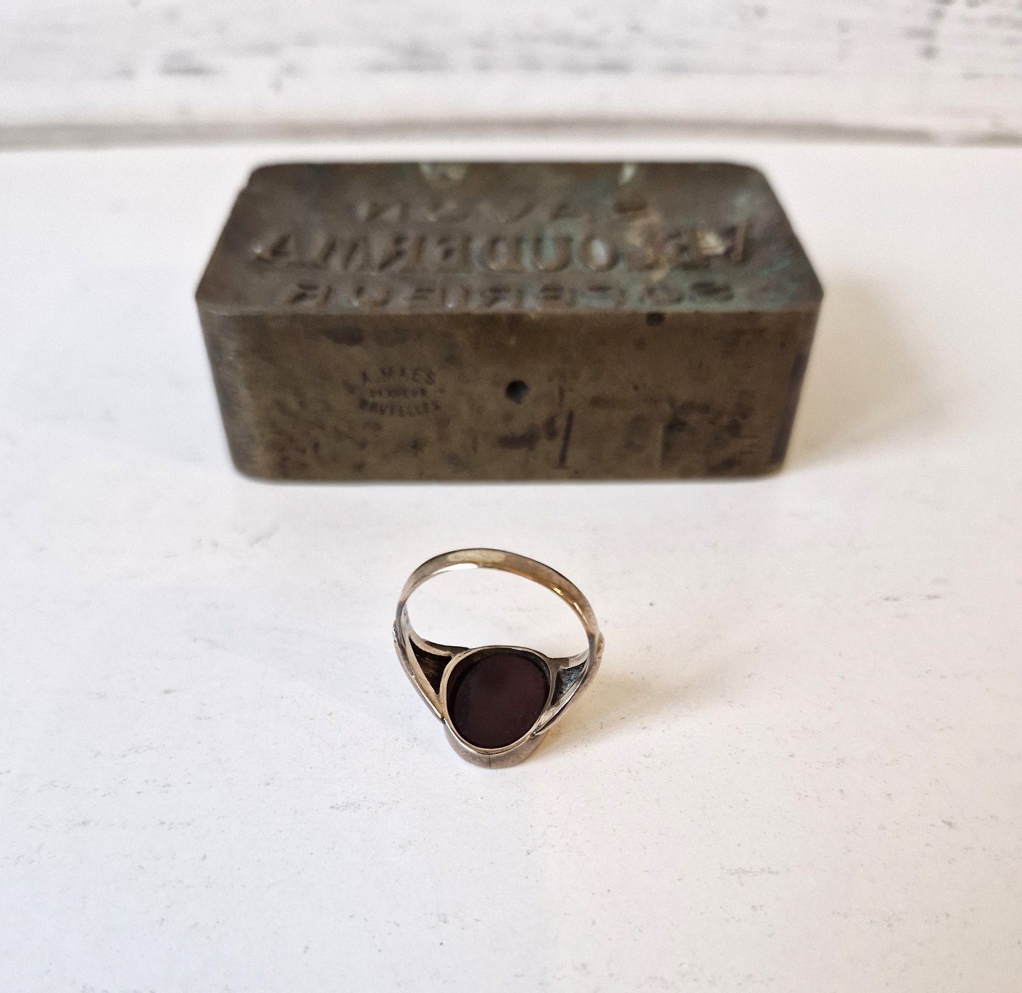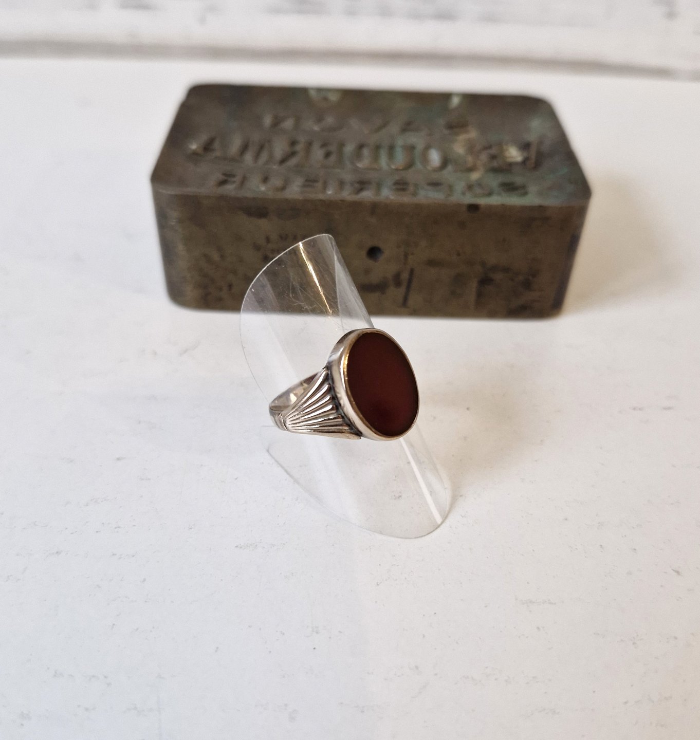 Beskrivelse: Vintage herrering i 8 kt guld med karneol af Harald Emil Herbst