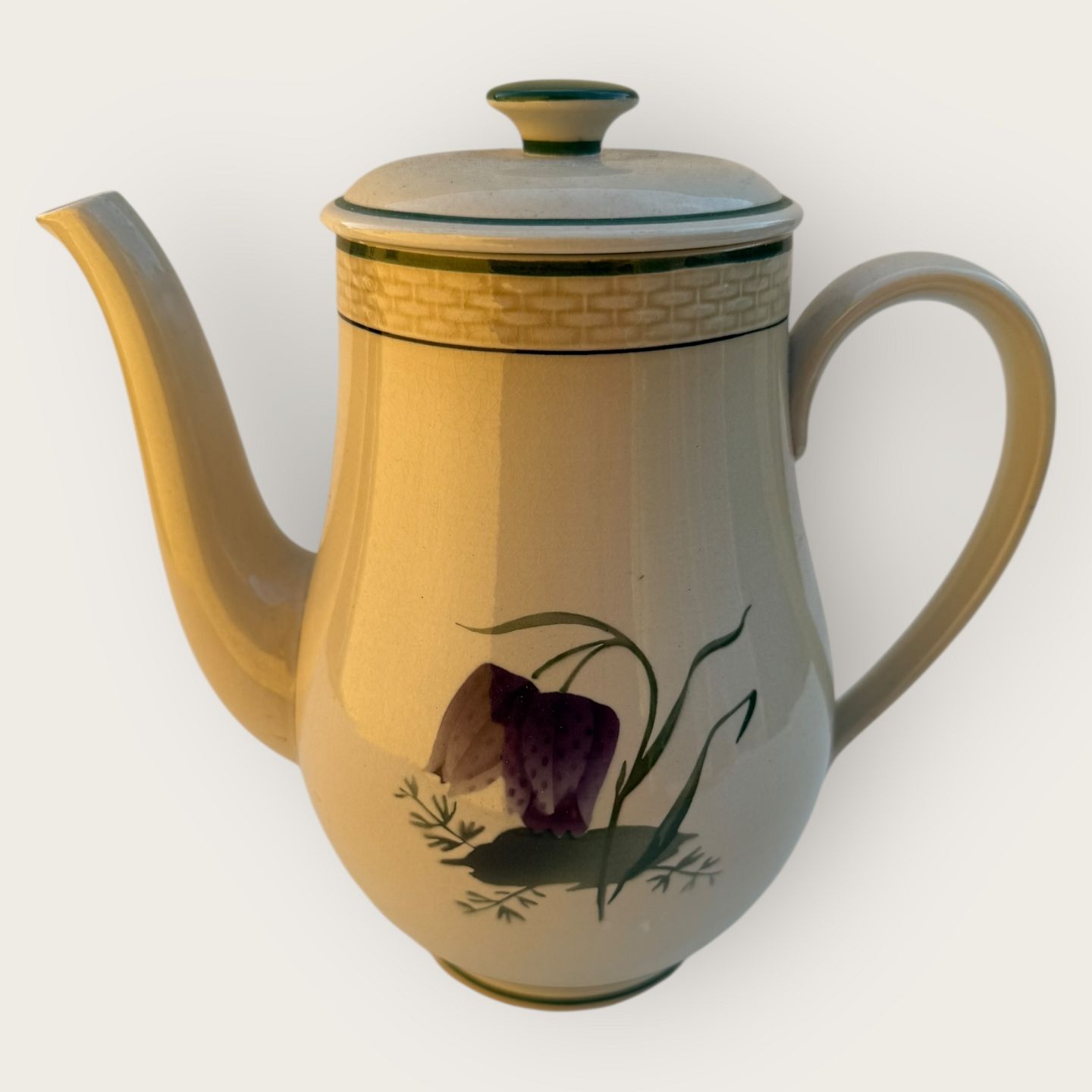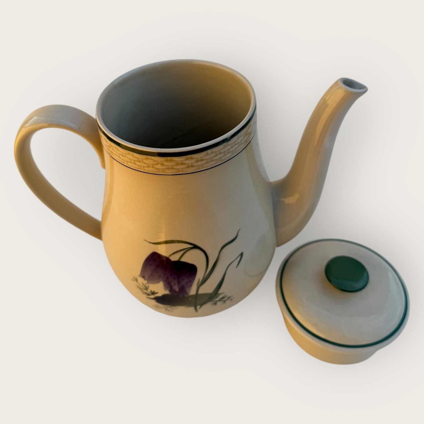 Beskrivelse: Royal Copenhagen, Aluminia, Victoria II stelform, Vibeæg, Fritillaria meleagris, Kaffekande, 20cm høj *pæn stand*