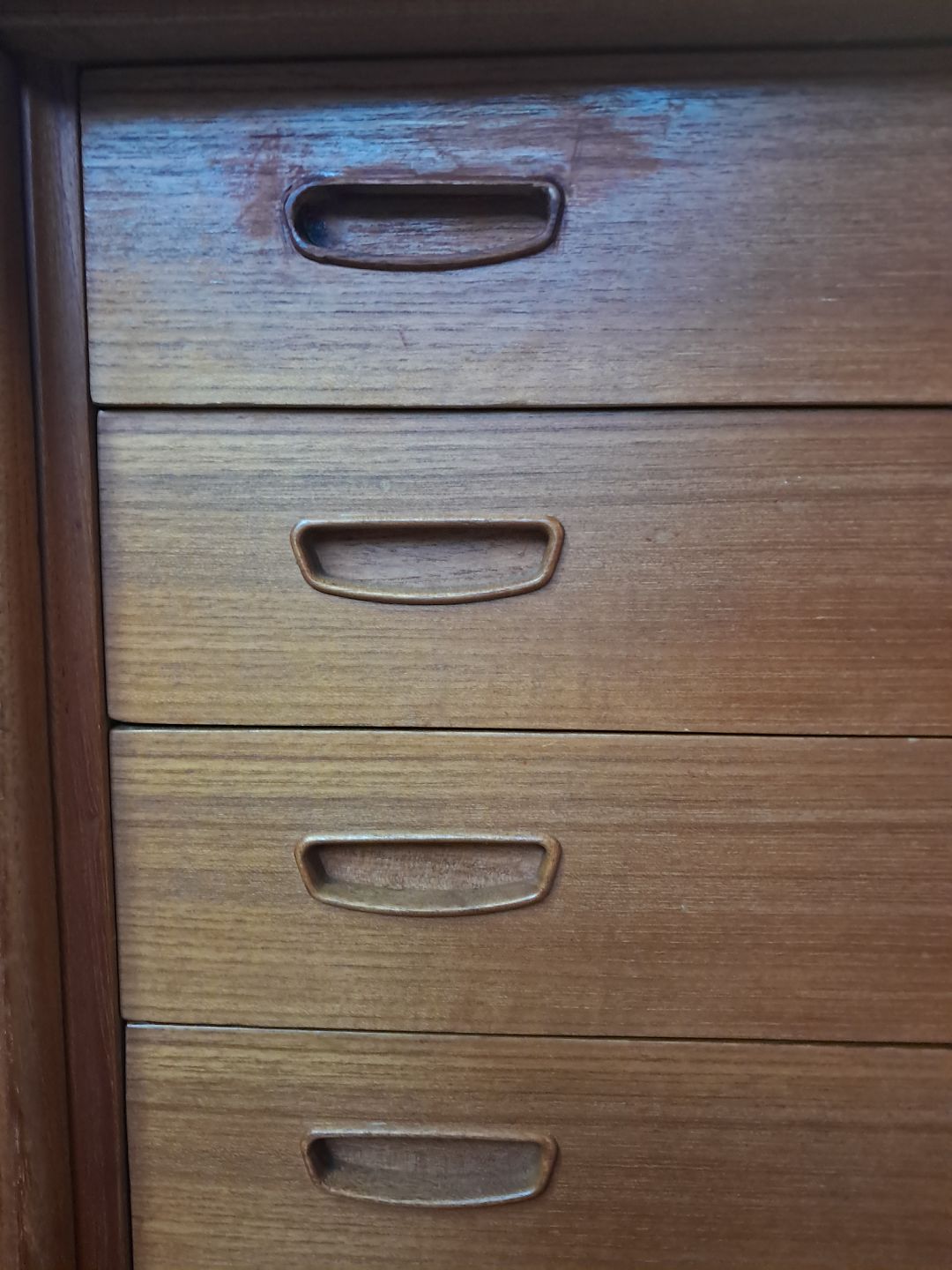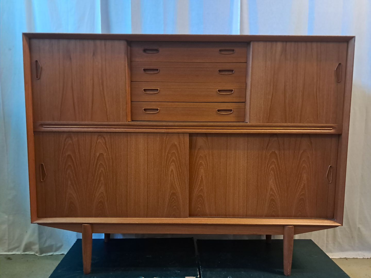 Beskrivelse: Skænk i fineret teaktræ, fra 1960erne.