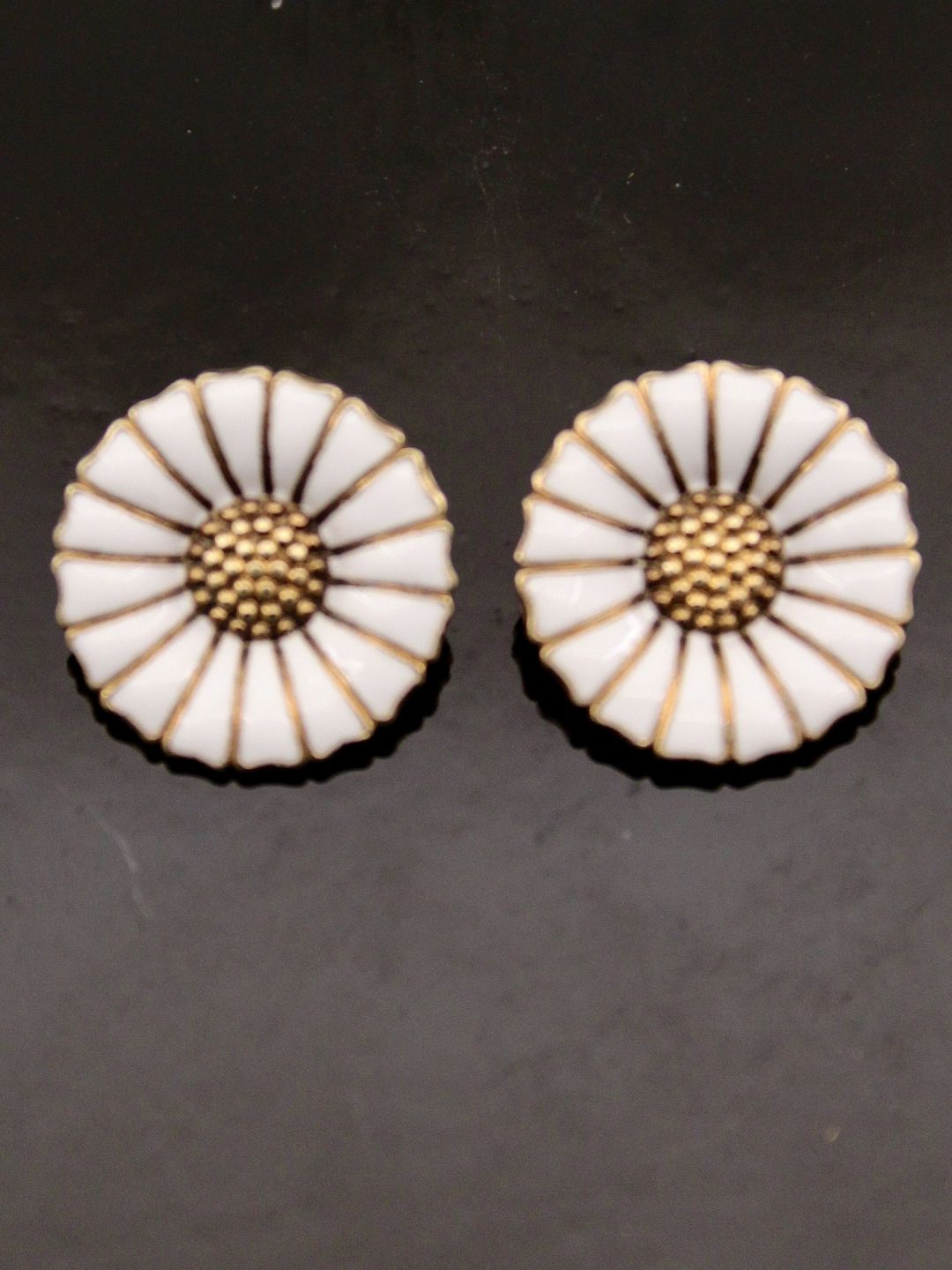 : A. Michelsen marguerit øreclips 1,8 cm. sterling sølv med hvid. emalje emne nr. 628607