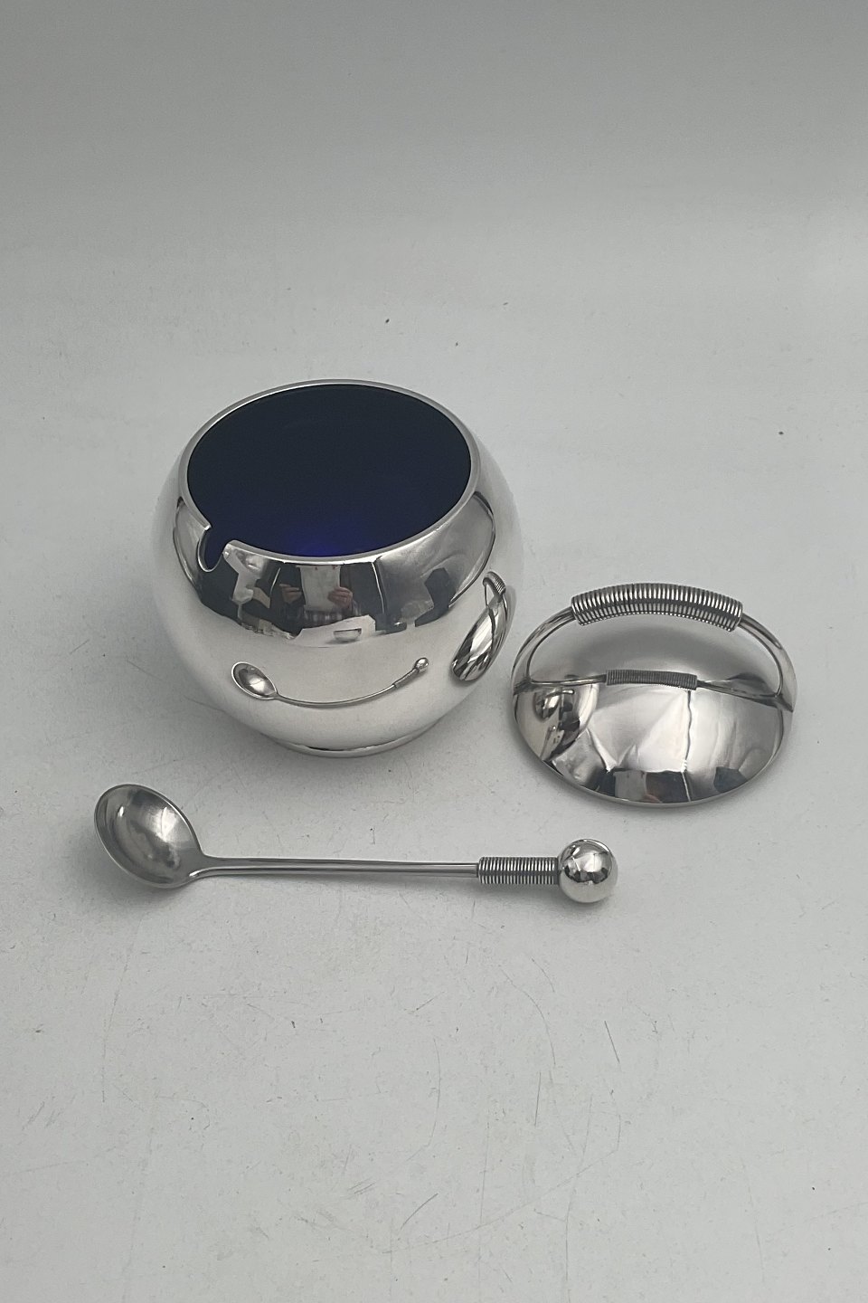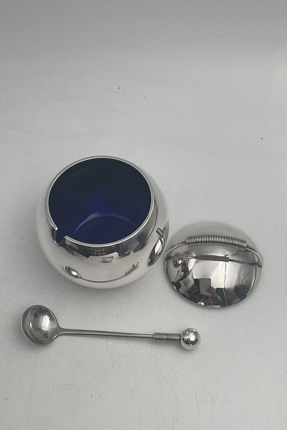 Description: Hingelberg Sterling Silver Mustard Pot with lid and spoon by Svend Weihrauch