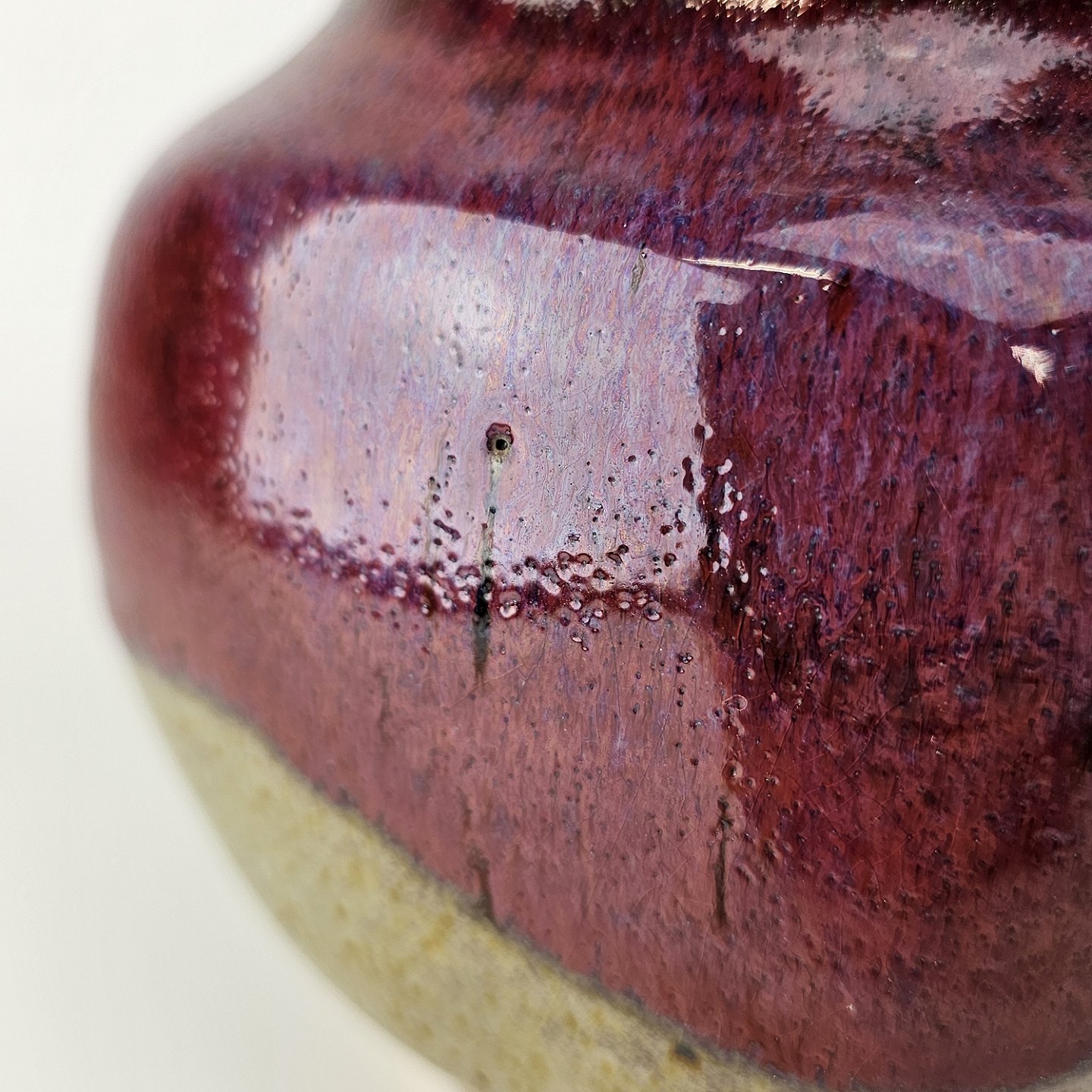 Beskrivelse: Rød blodglassur med brun keramik unika vase.
