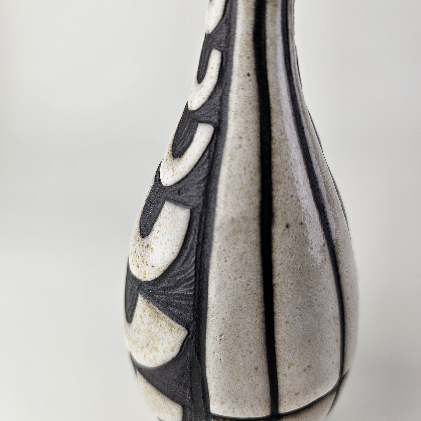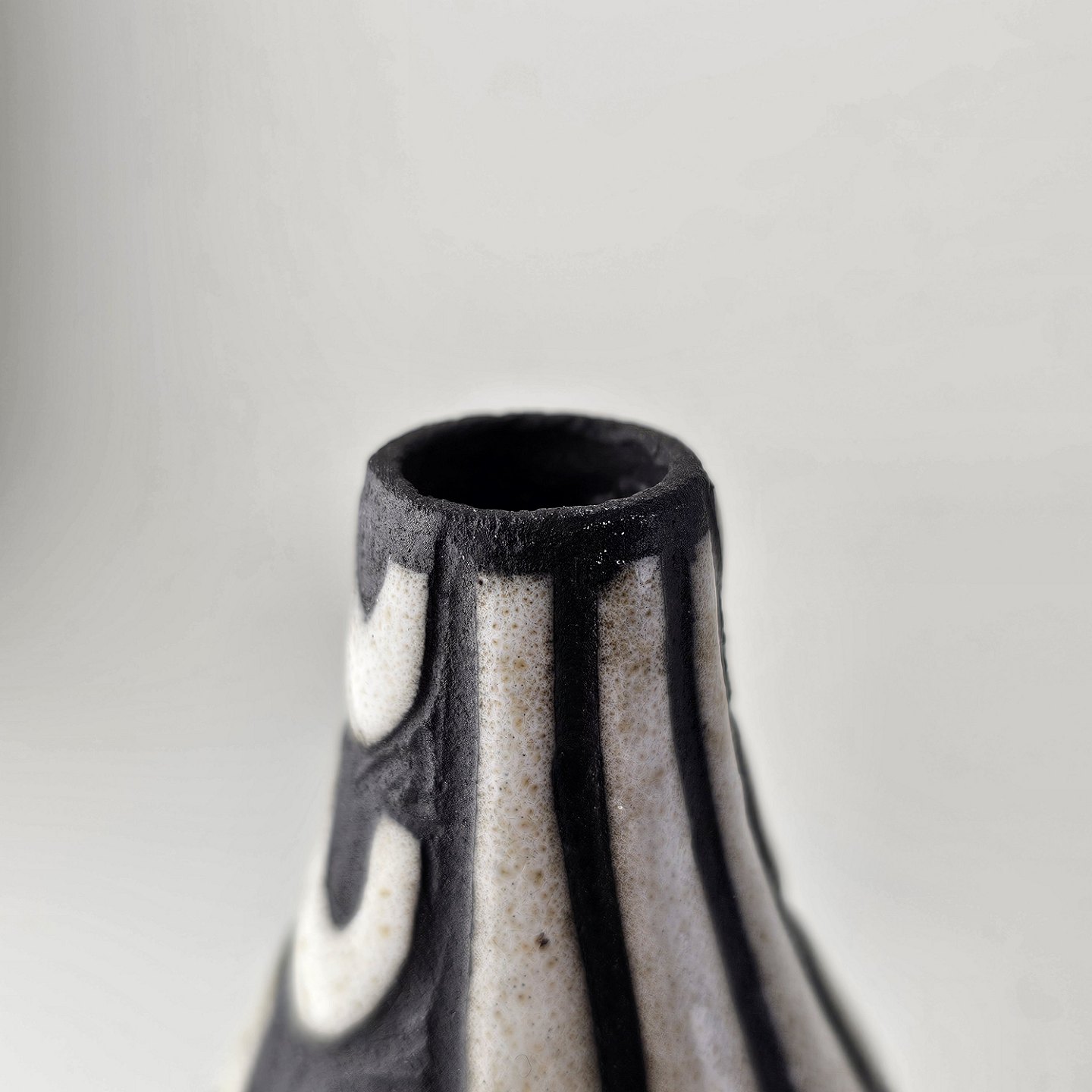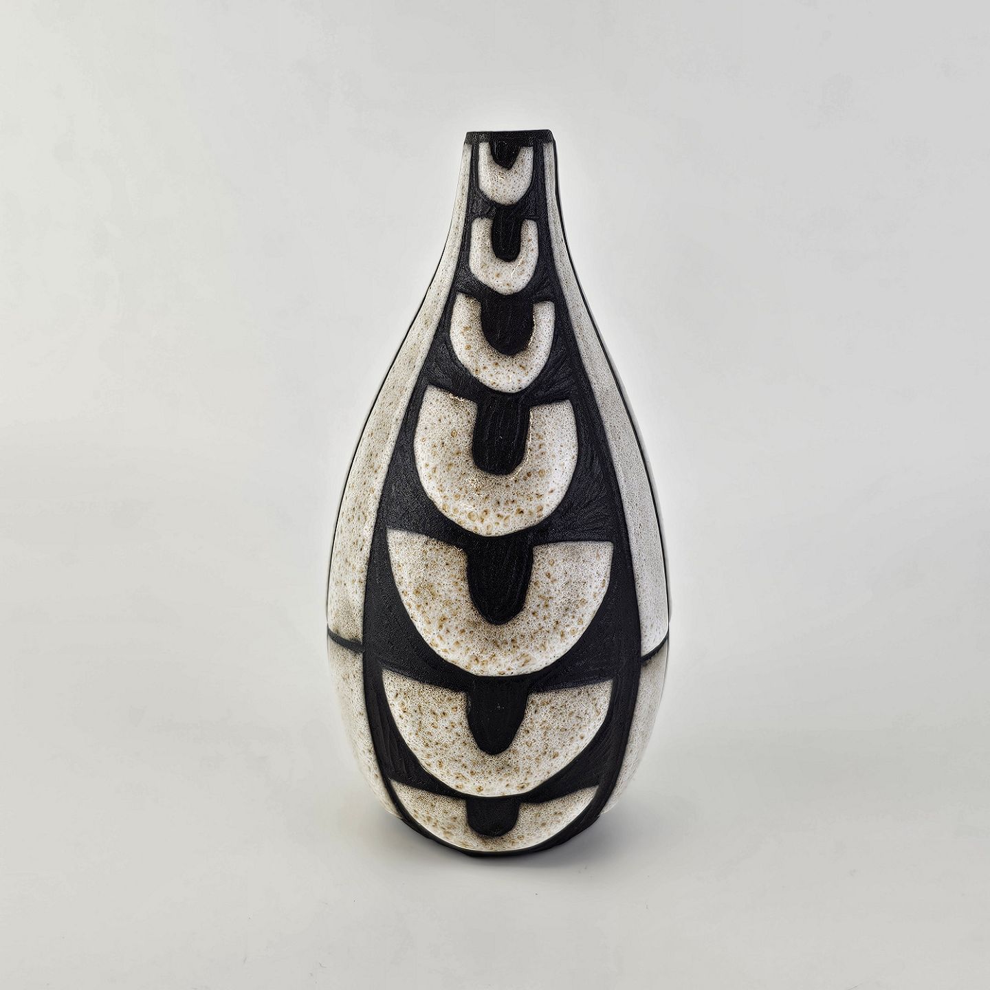 Beskrivelse: Vase i keramik fra Negro serien med abstrakt motiv på mørk baggrund. Nr. N5508
