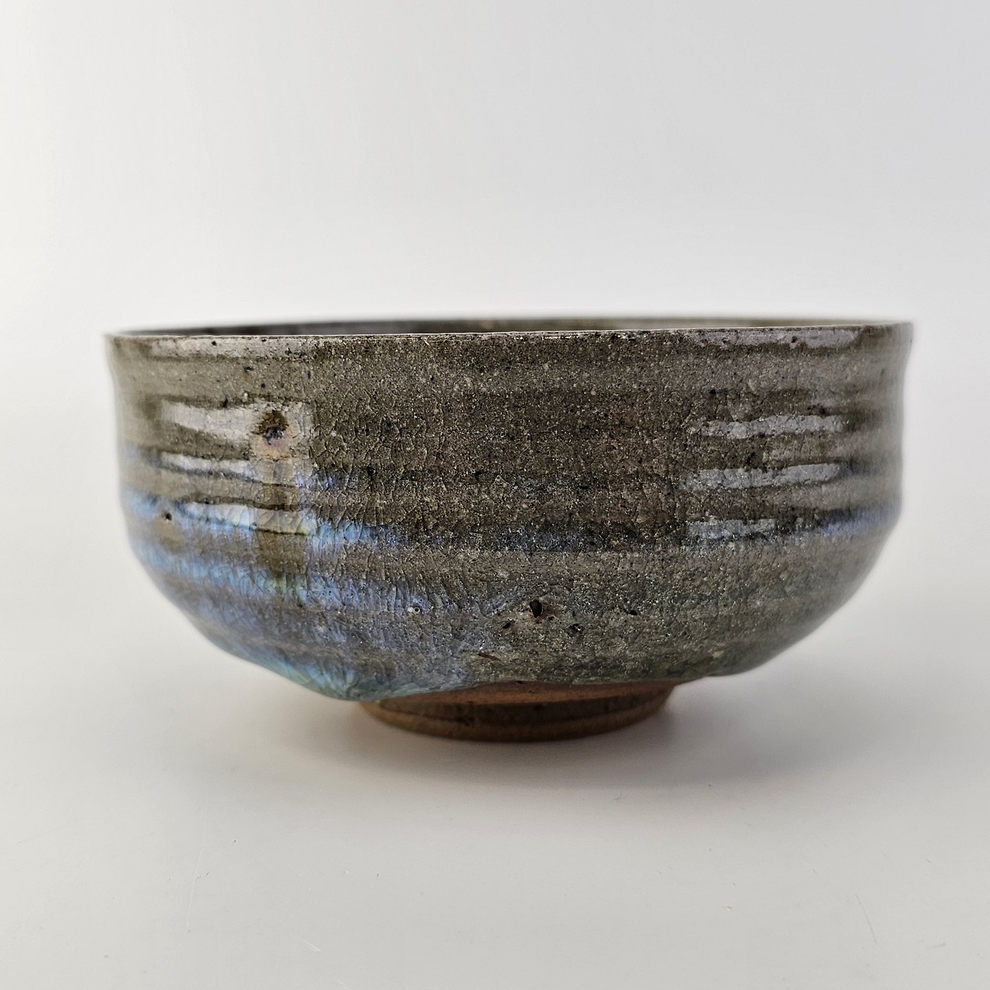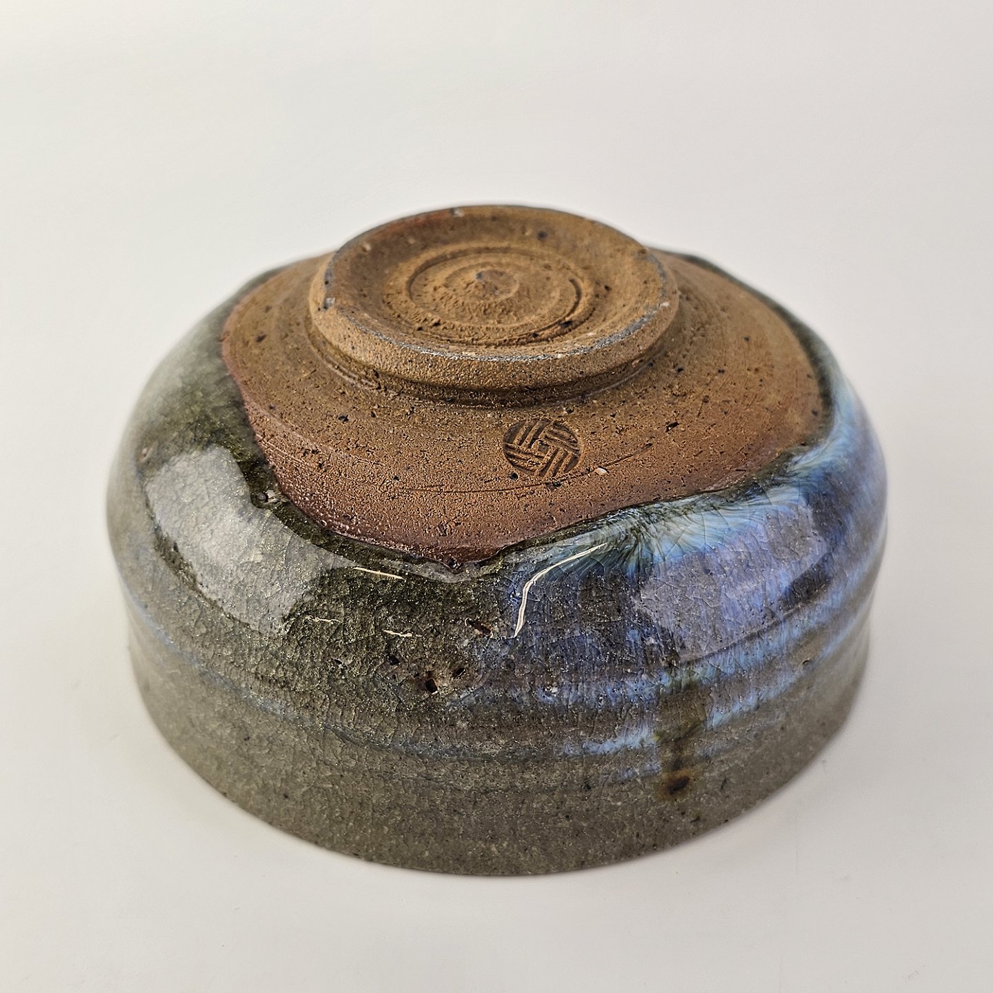Beskrivelse: Lille skål med Grønblå glasur med krakeleringer