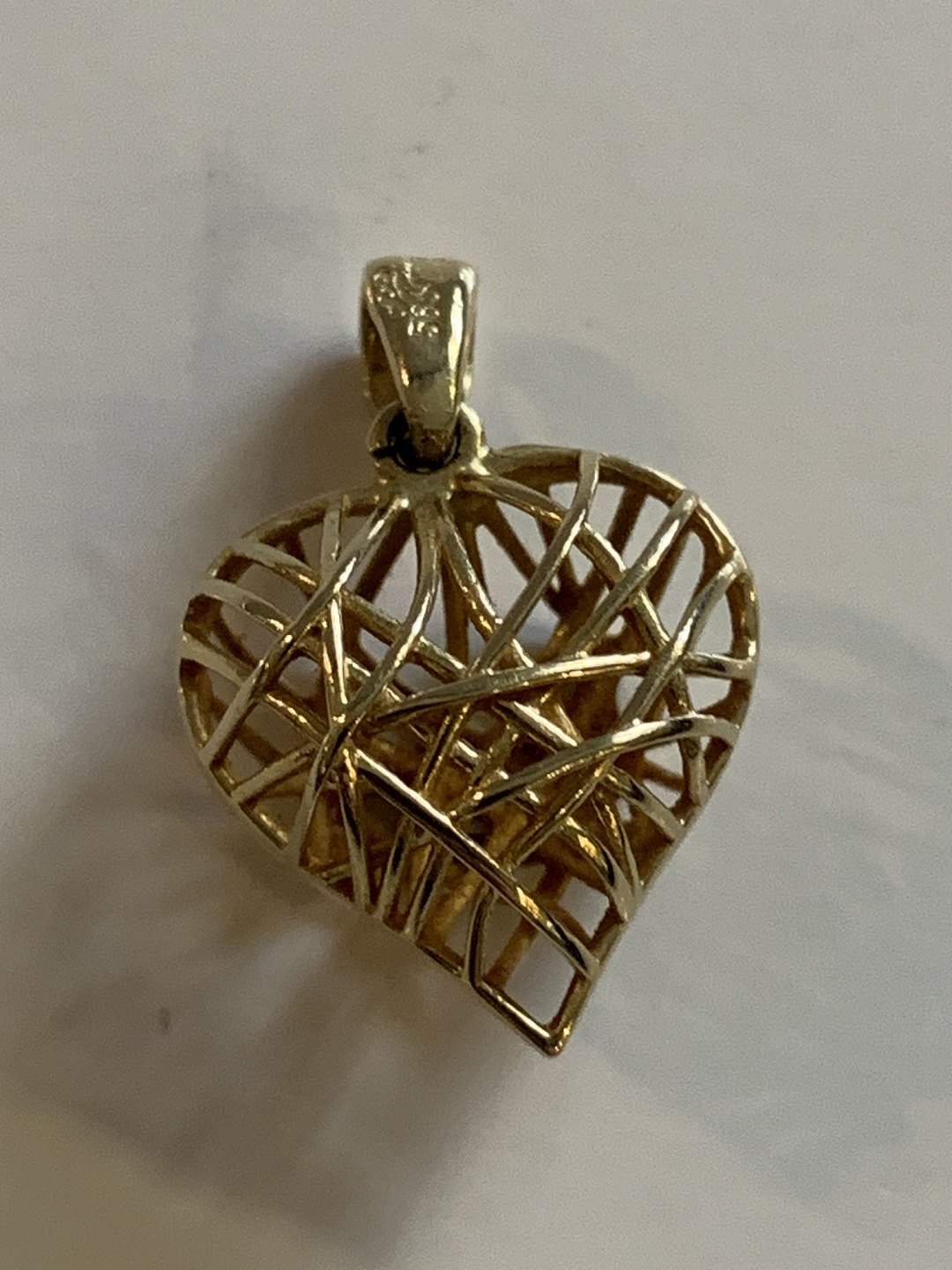 Beskrivelse: Dette hjerteformede vedhæng er lavet i anderledes stil, som om det er vævet af guldtråde. Det giver vedhænget et luftigt og levende udseende, der vil være et perfekt match med en tynd guldkæde. Designet af vedhænget, får det til at ligne et svulmende hjerte. Et flot vedhæng især til den unge pige.