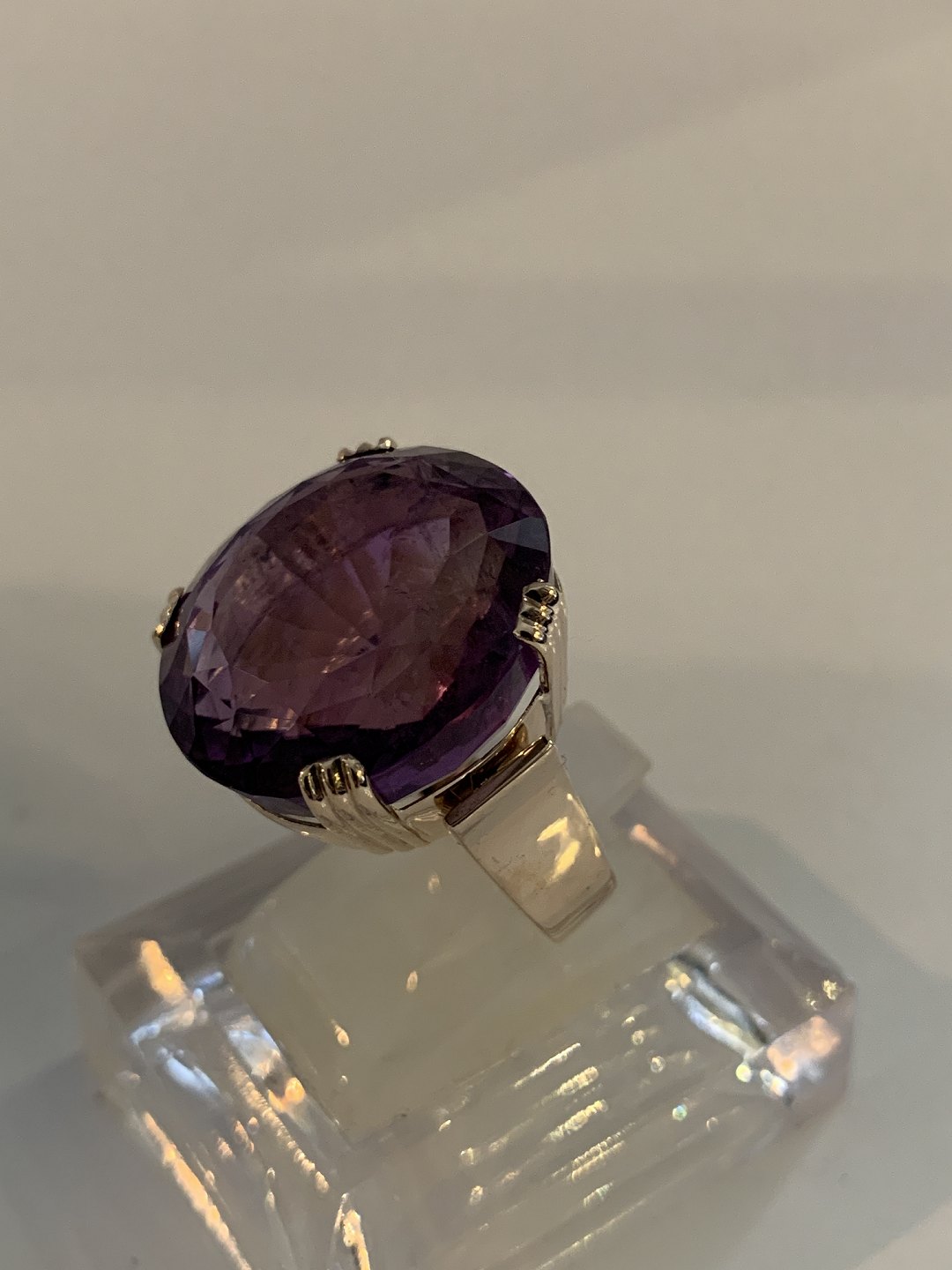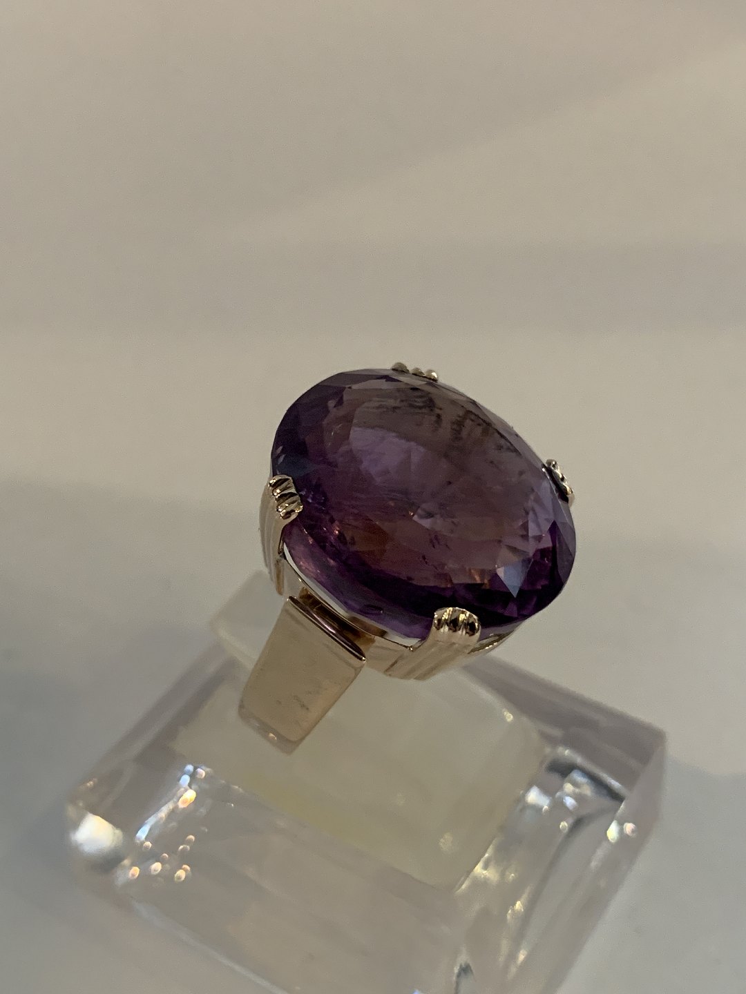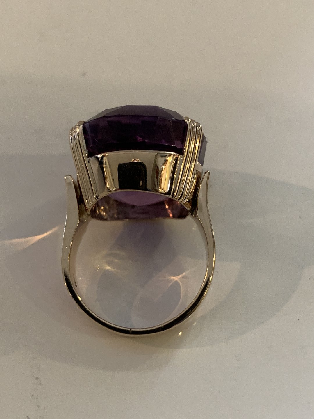 Beskrivelse: Vintage Damering med en stor ametyst 12 Karat Guld