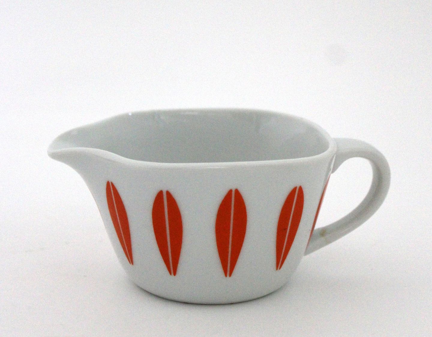 Beskrivelse: Lyngby, Dan-ild porcelæn, Orange Lotus, Flødekande. Serien Lotus er designet af Grete Prytz Kittelsen for Cathrineholm i 1950'erne. God stand med indvendig brændingsplet. Længde 12 cm. Bredde 7,5 cm. Højde 5 cm. Pris: 200 kr. stk. Lager: 1
