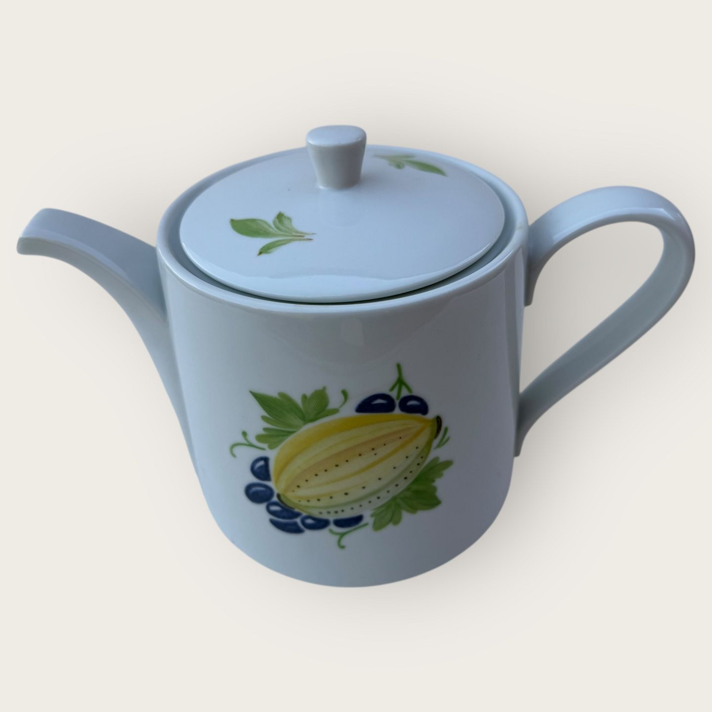 Beskrivelse: Lyngby, Danild 50, Picnic / Frugt og Grønt, Tekande, ca. 23x13x14cm, Design Axel Brüel & Egon Mortensen*Pæn brugt stand med lidt te aflejringer indvendigt*