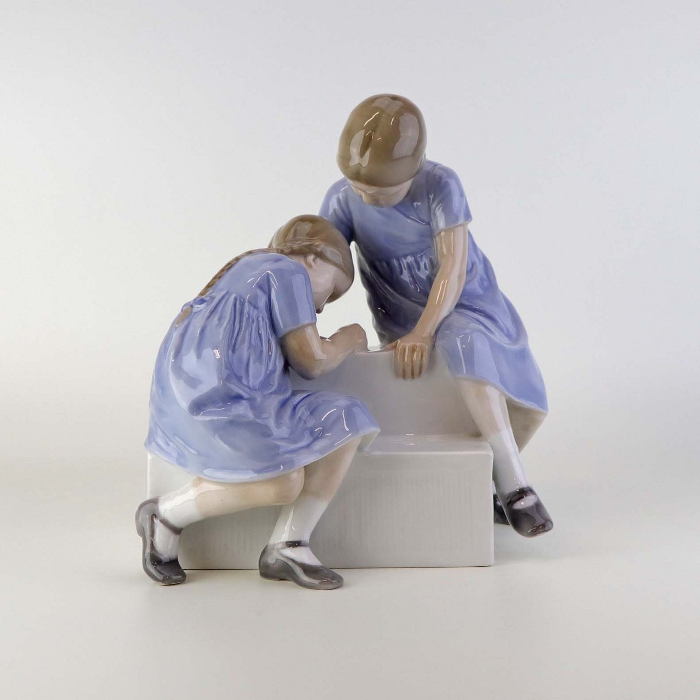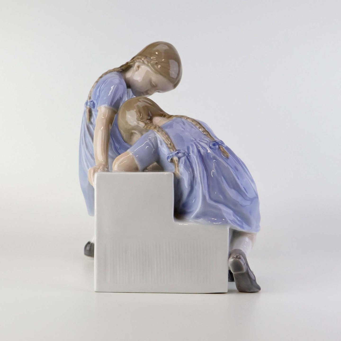 Beskrivelse: Figur i porcelæn med motiv af to piger på en tappesten. Nr. 1871