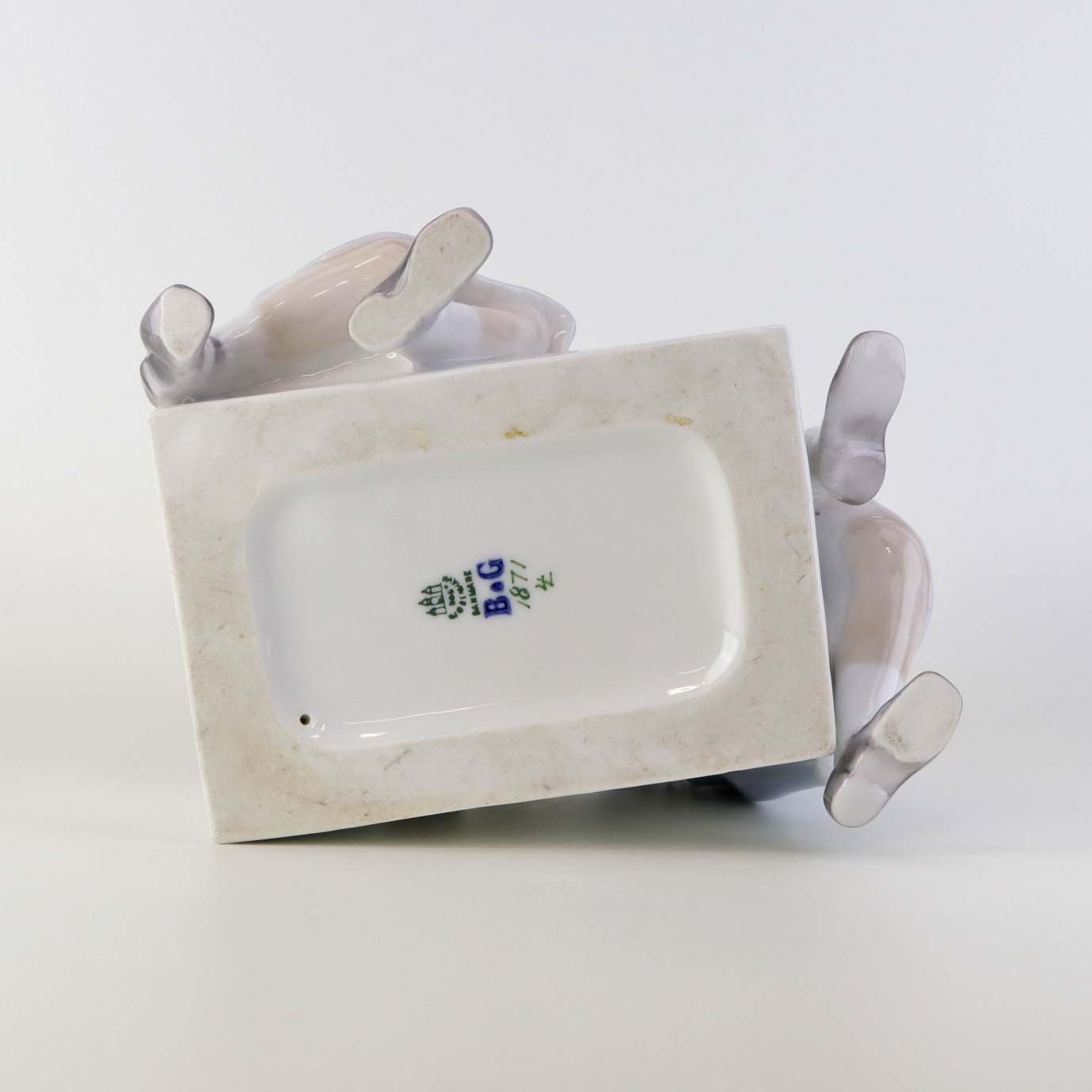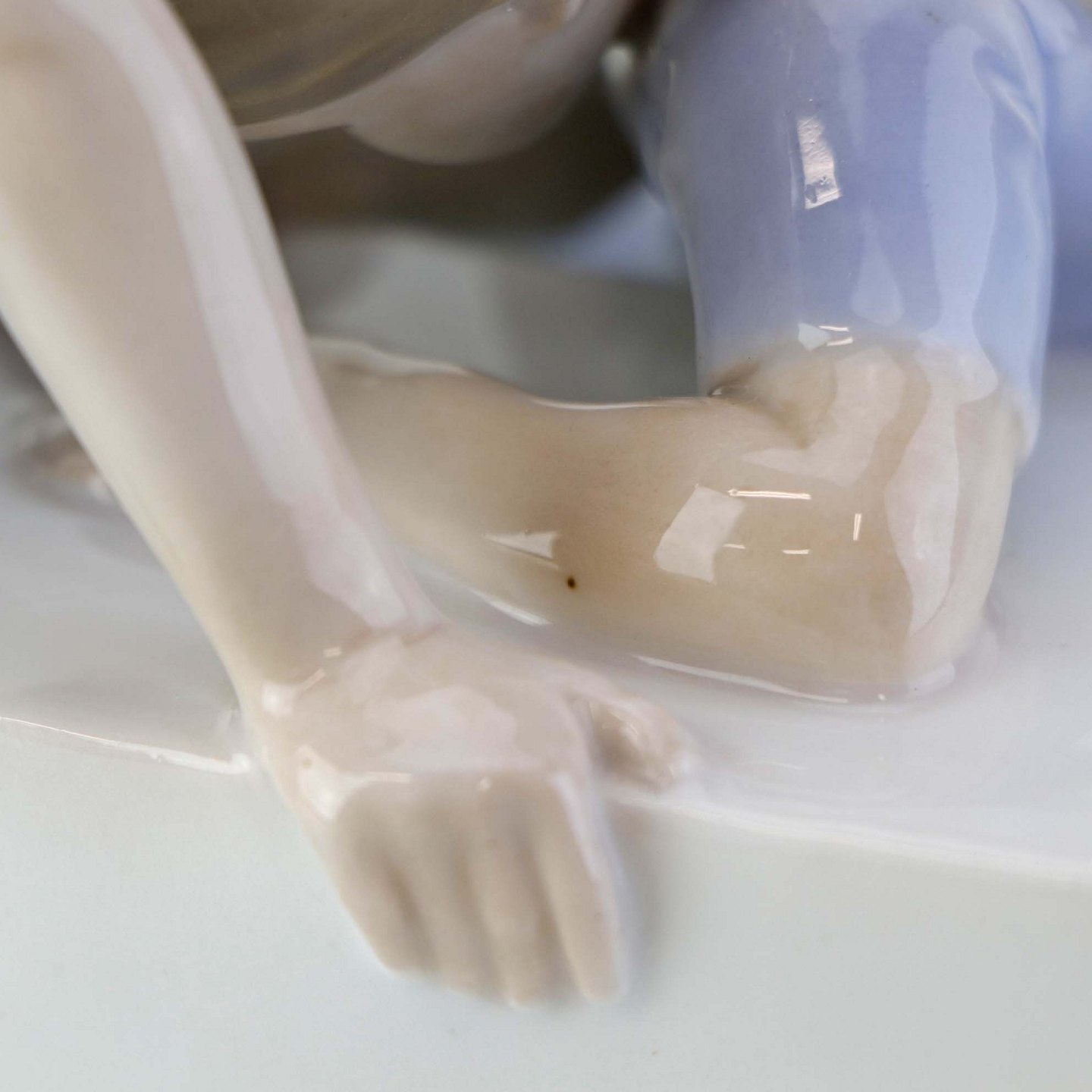Figuren fremstår med en mindre ujævnhed ved pigens ene fod samt en prik under glasuren på en af pigernes ene arm.