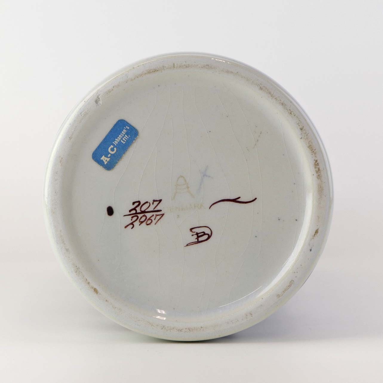 Fremstår med enkelte mindre ridser i glasuren samt en mindre fejl i glasuren ved topkanten.