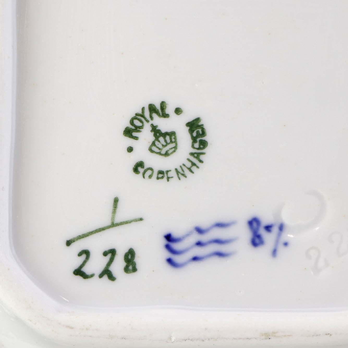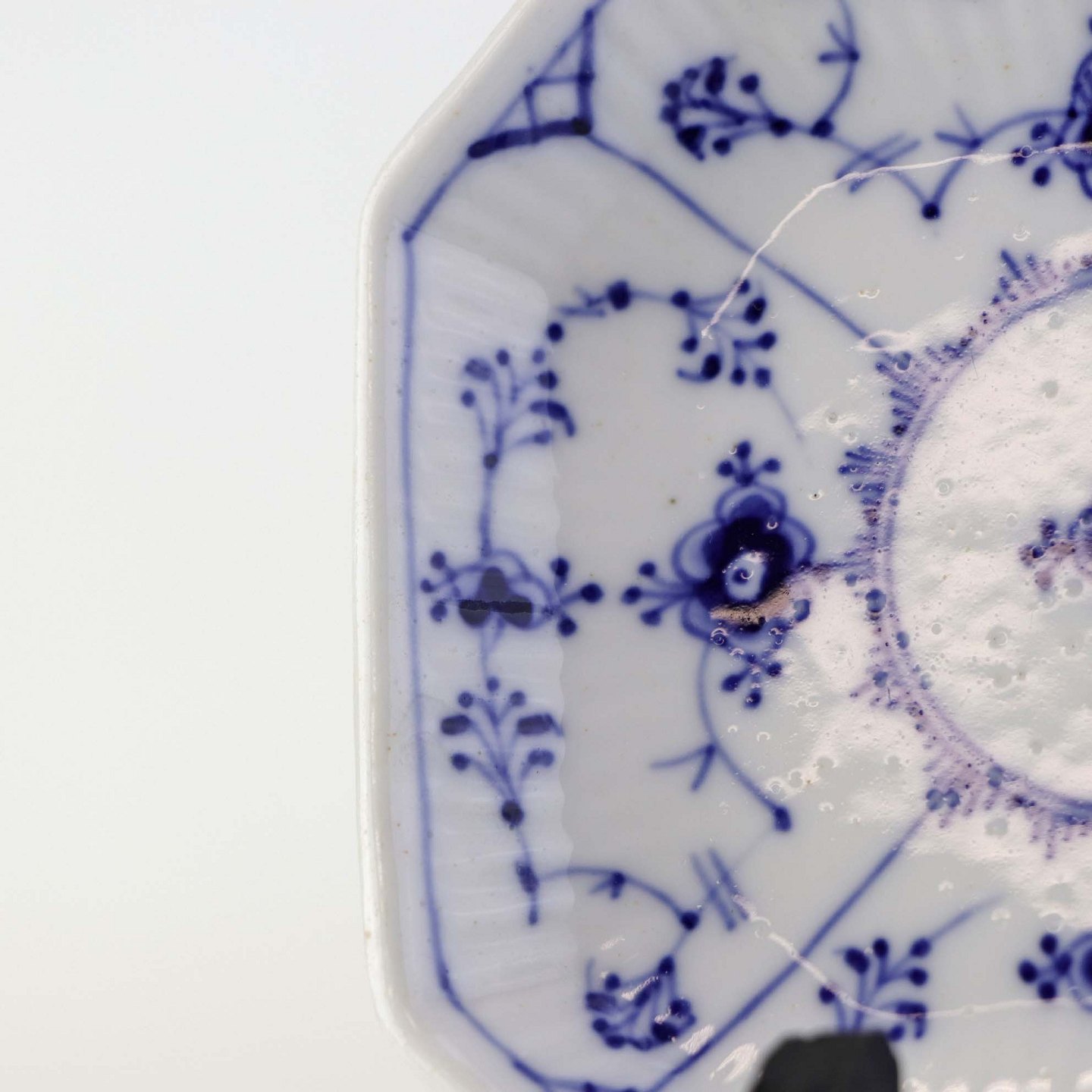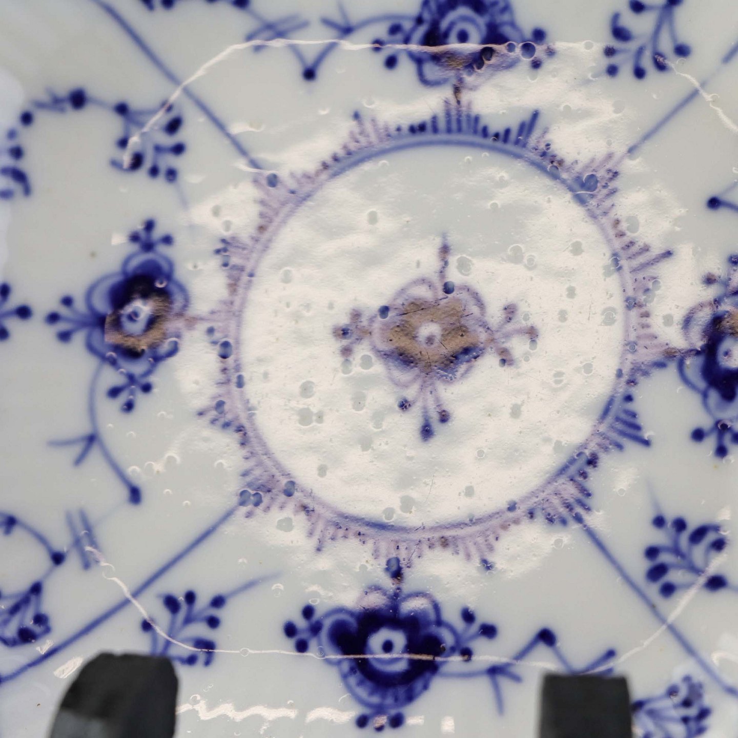 Beskrivelse: Sættefad i kongelig porcelæn fra stellet Musselmalet riflet. Nr. 1/228