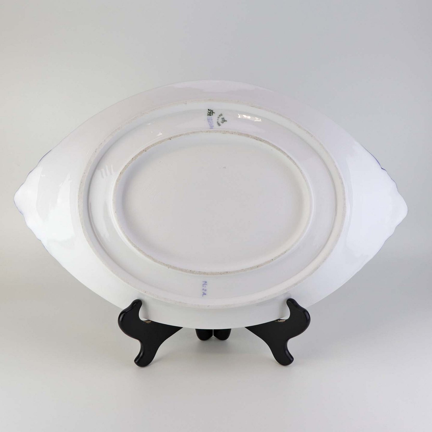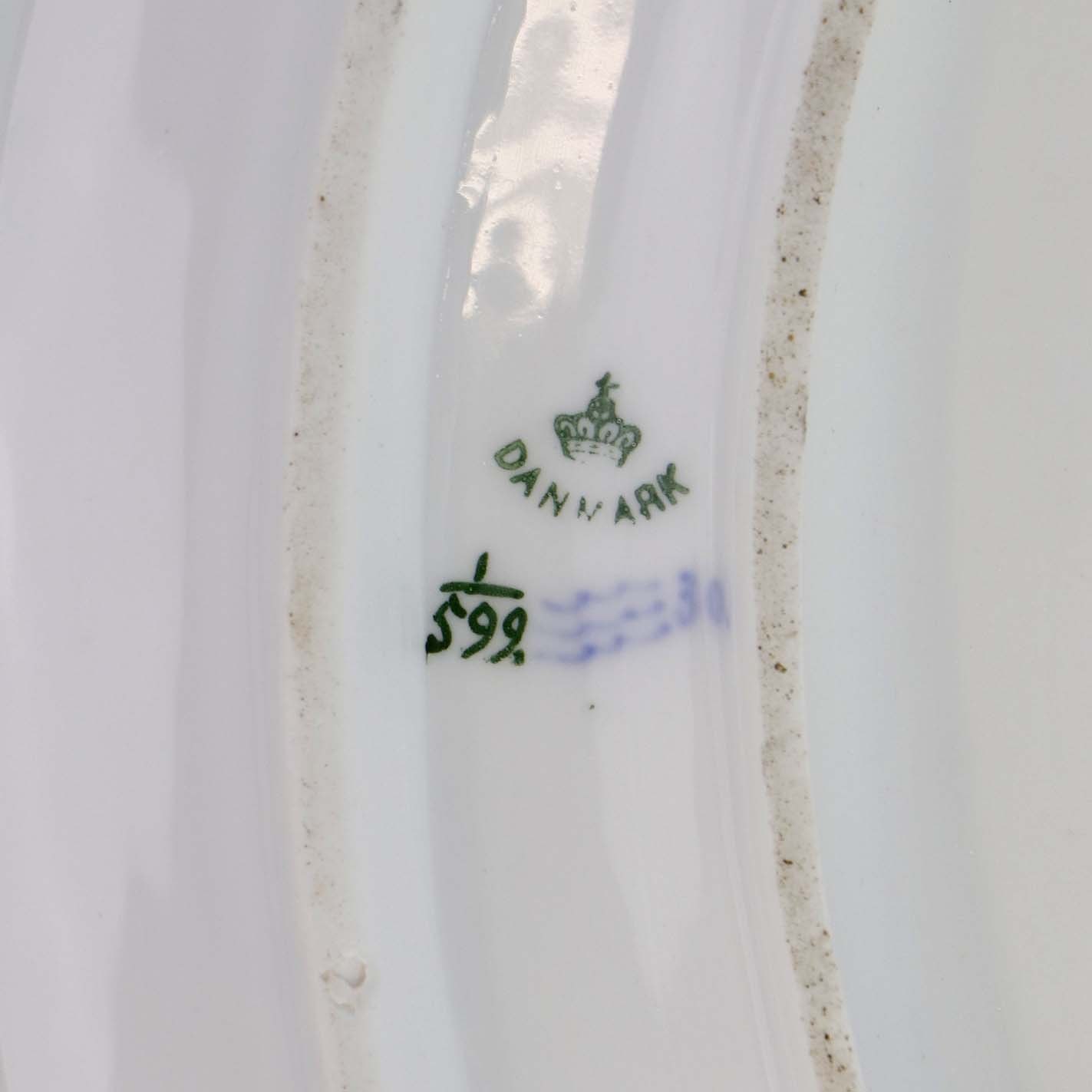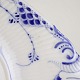 Beskrivelse: Underfad i kongelig porcelæn fra stellet Musselmalet Halvblonde. Nr. 1/599