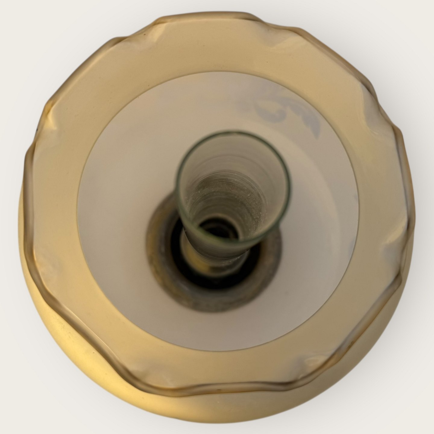 Beskrivelse: Cawa petroleumslampe, messing med glasskærm, højde 31cm, meget lille hak i brændeglasset øverst (se foto) *Ellers pæn patineret stand*