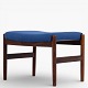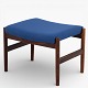 Fodskammel i patineret palisander betrukket med blå uld.