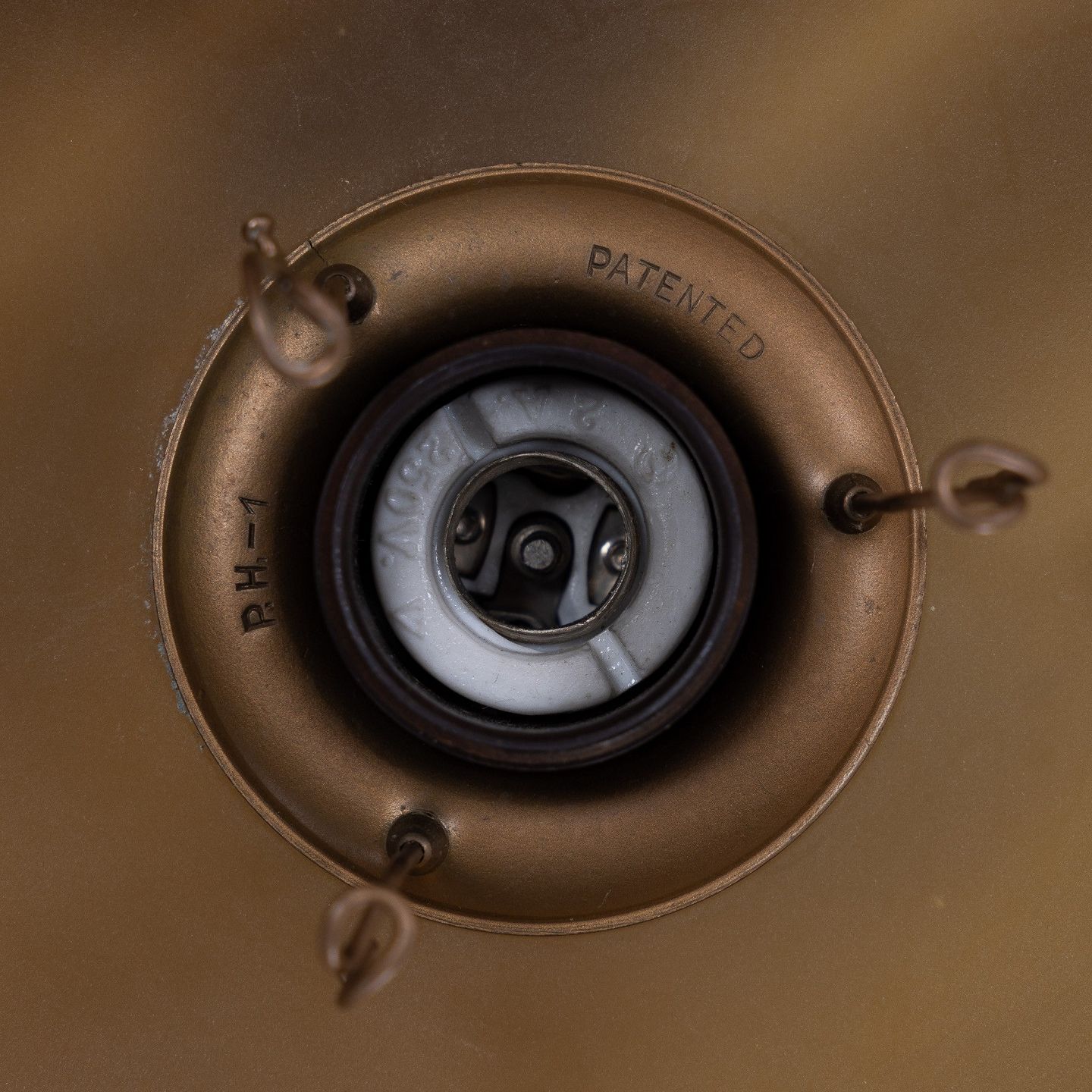 PH 1/1 - Pendant lamp with amber glass shades. Stamped 'Patented'.