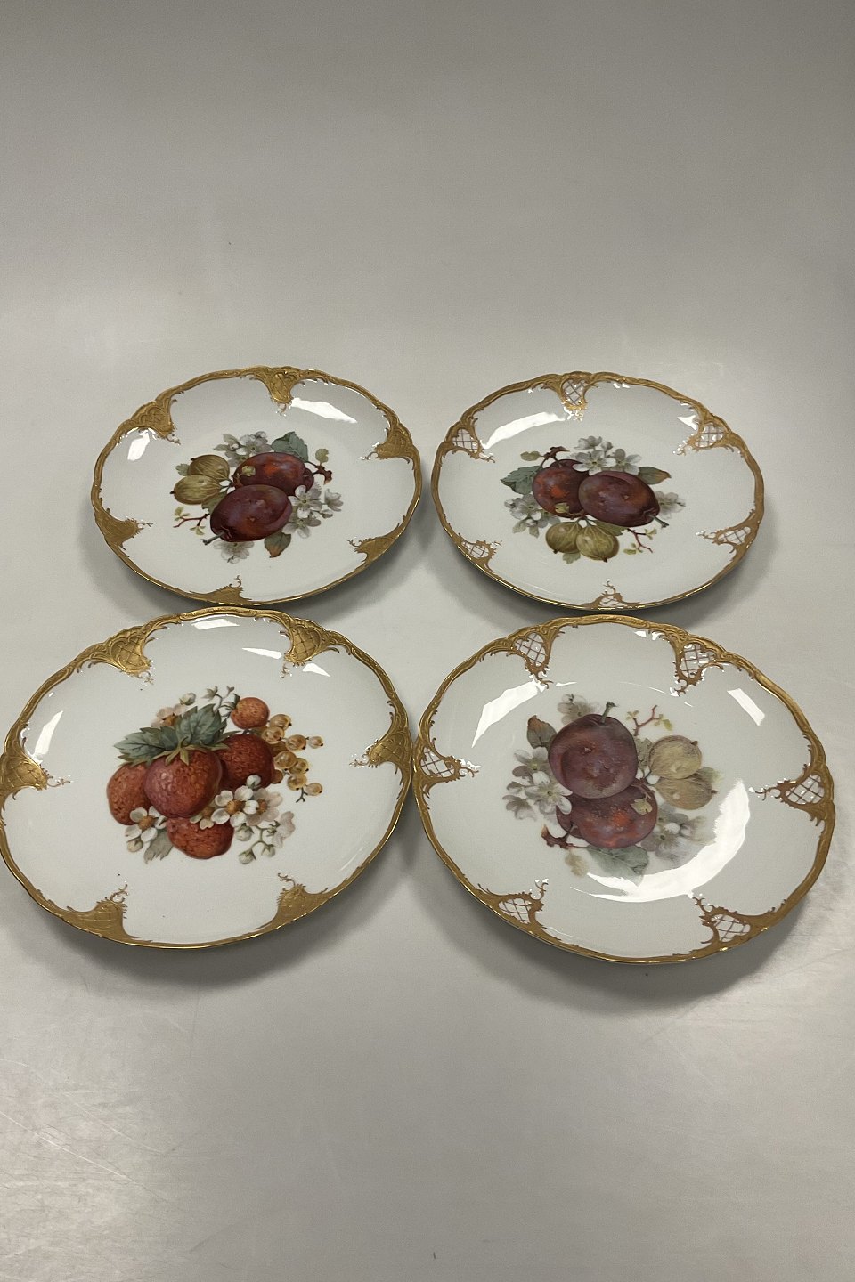 Sæt på 12 Tyske Furstenberg Frugttallerkener i overglasur og guld