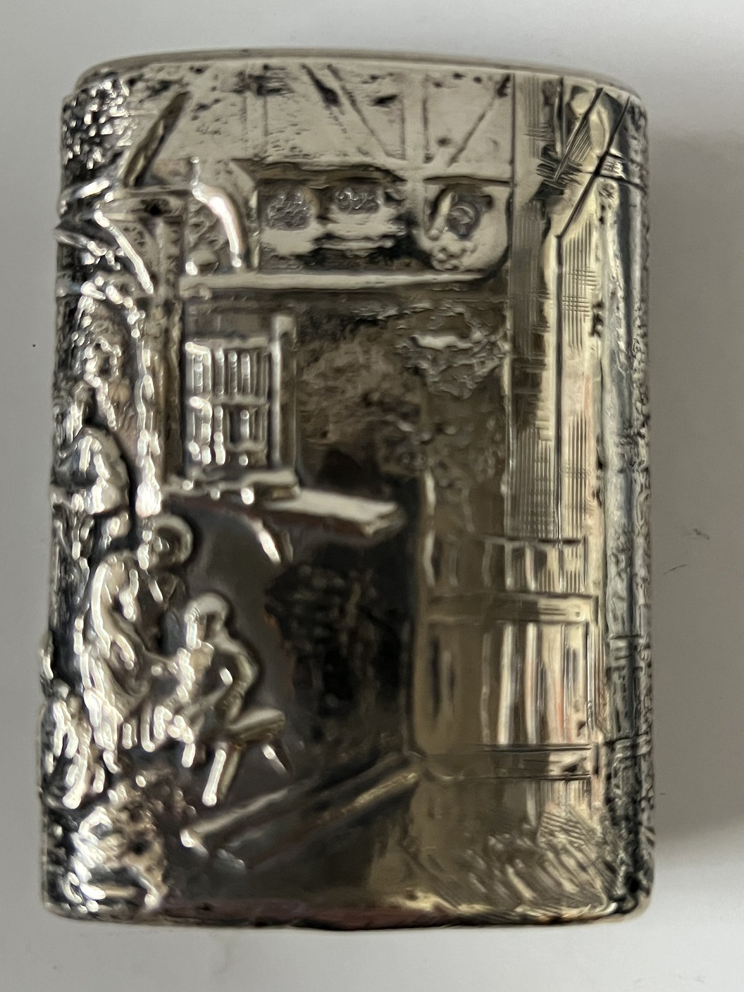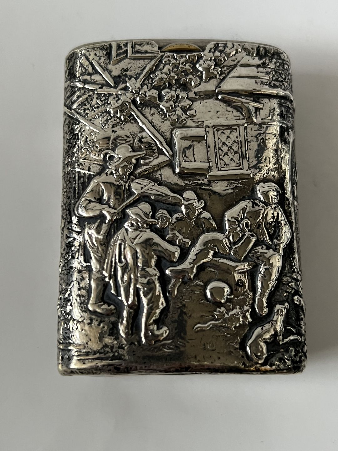 Sterling silver matchbox with a beautiful motif. Stamped 925.