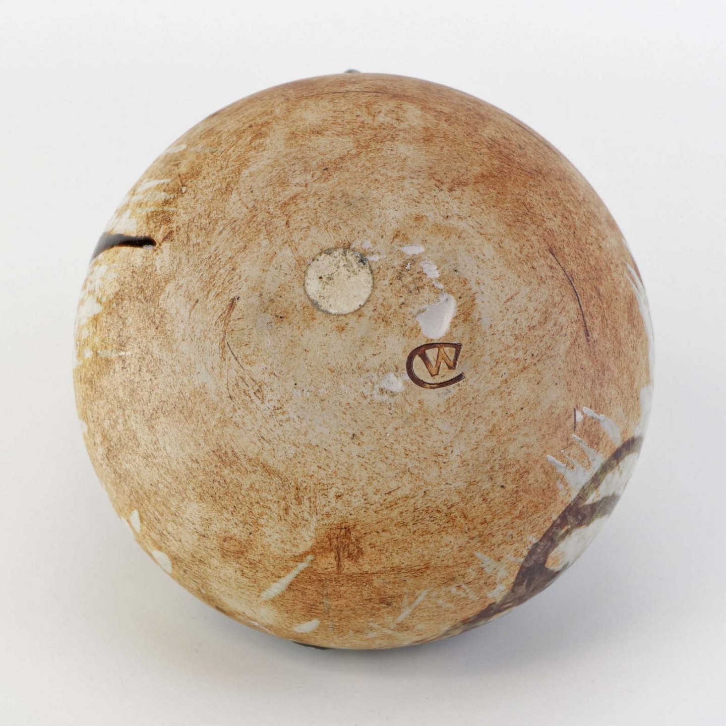 Beskrivelse: Lav rund vase i keramik. Delvist glaseret med flerfarvet mat og glansfuld glasur.