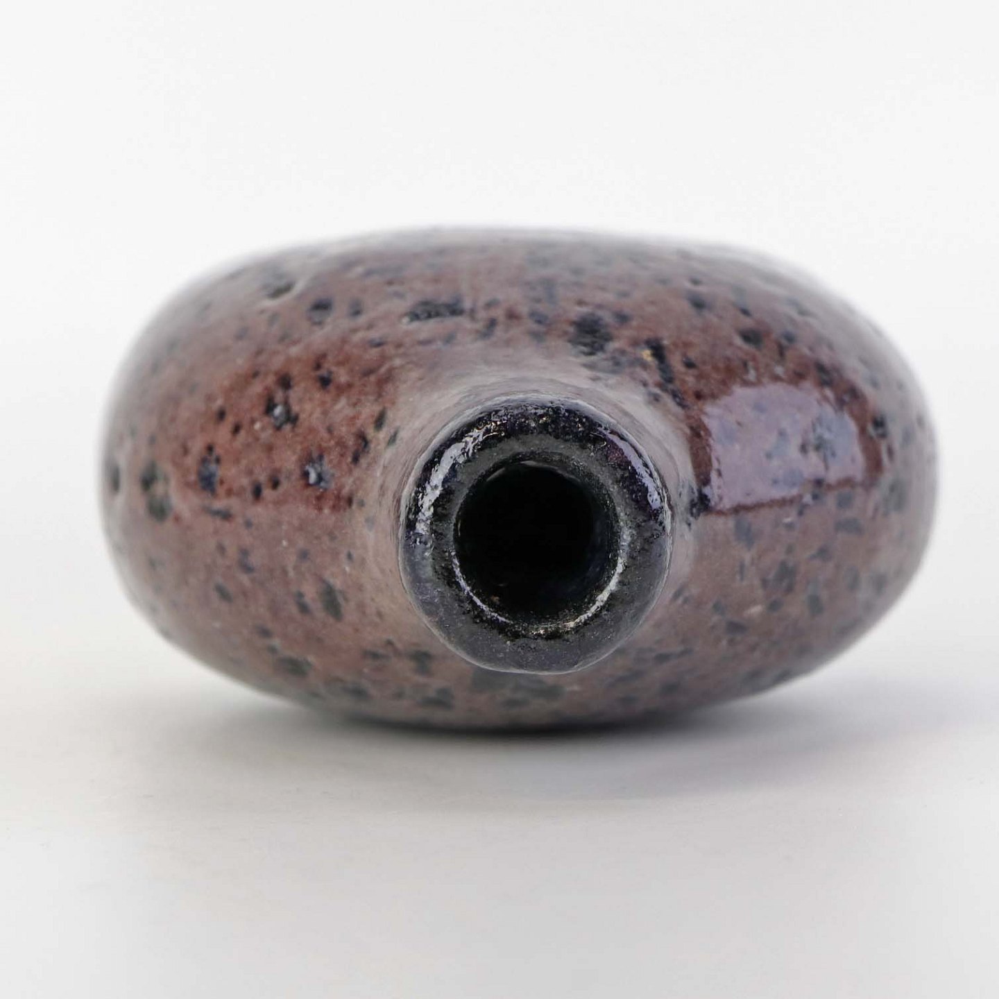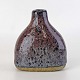Beskrivelse: Lille flaskeformet vase i keramik med blommefarvet glasur.