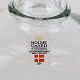 Beskrivelse: Dramflaske i glas med julemotiv af Nisse, hund og ræv efter tegning af Harald Wibergs. Snapseflasken kommer med korkprop.