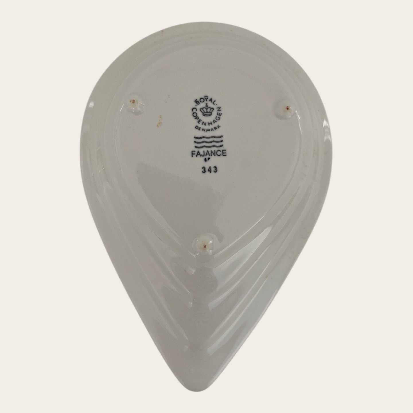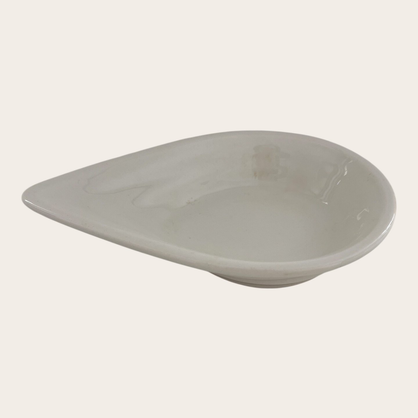 Beskrivelse: Royal Copenhagen, Aluminia, Dråbe skål / Låg til kande ( varenr. 629132) Hvid #343, 1. sortering, 15,5cm lang, 10,5cm bred, Design Ursula Munch Petersen *Pæn stand med lettere brugsspor*