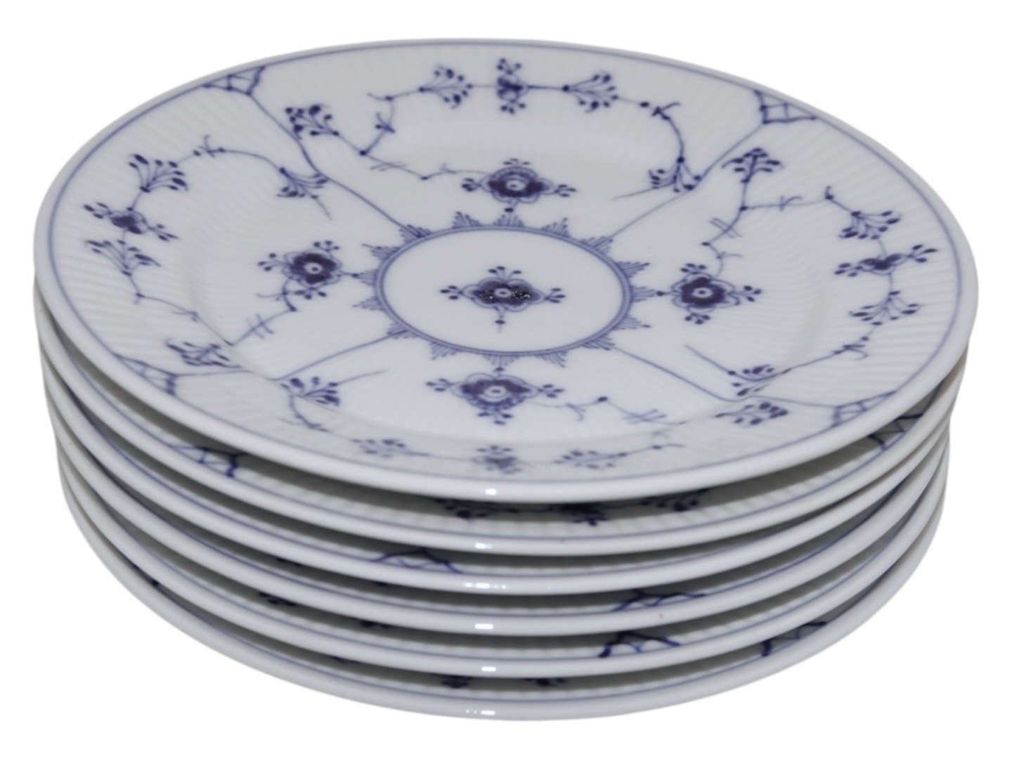 Beskrivelse: Musselmalet Riflet, helflad sildetallerken.