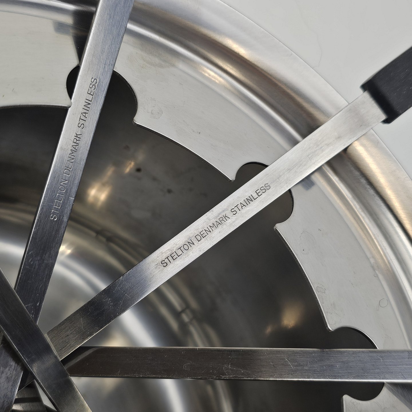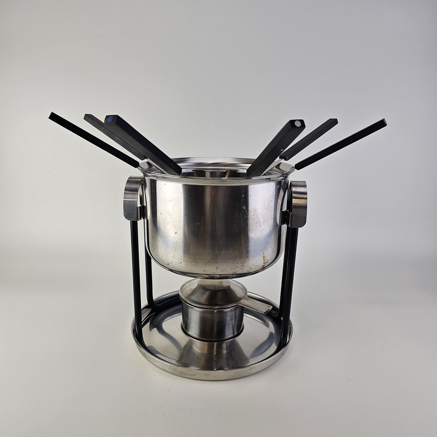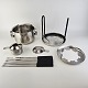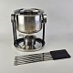 Beskrivelse: Stelton fonduesæt i rustfrit stål inklusiv stander, brænder, gryde og seks fondue gafler