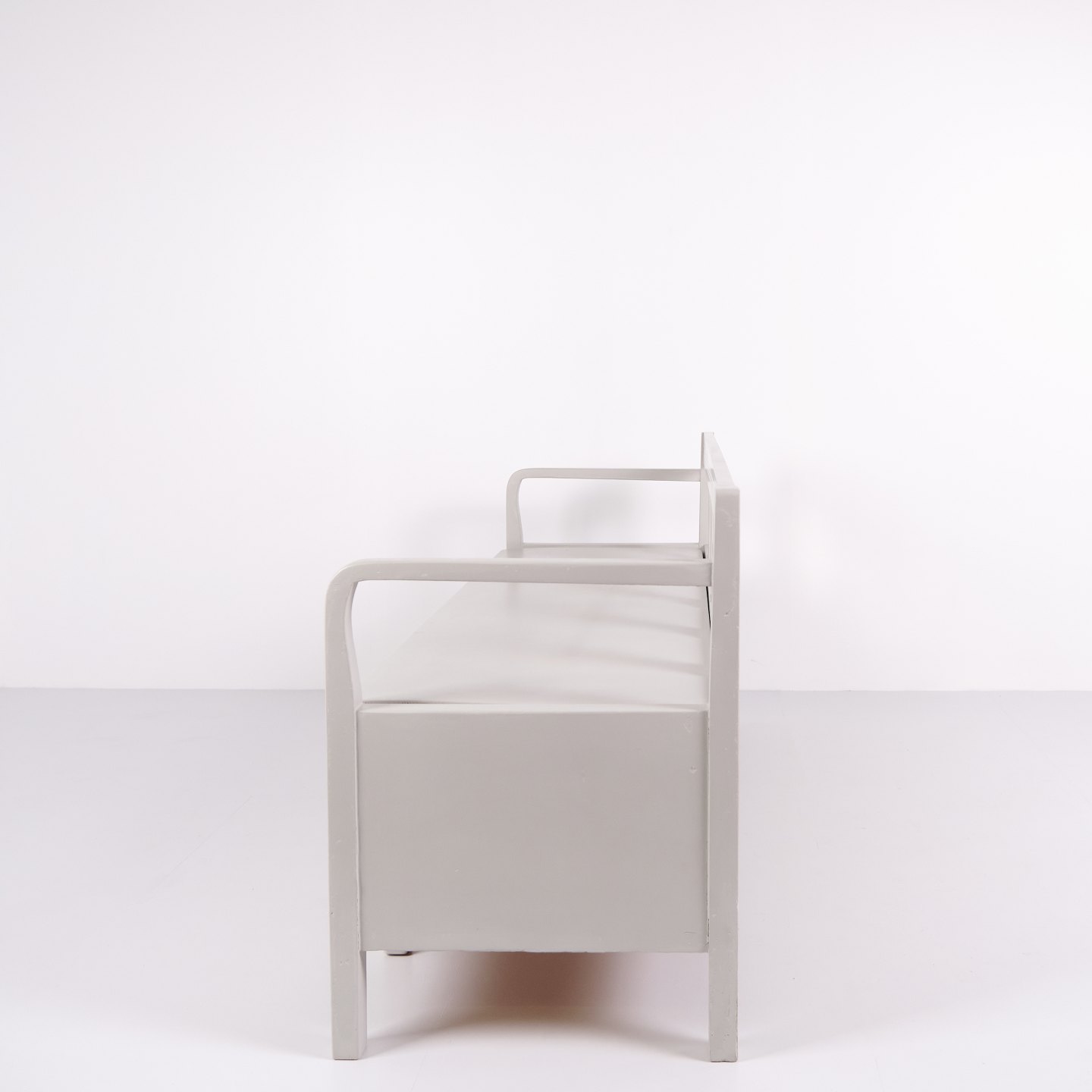 Beskrivelse: Antik slagbænk fra 1860’erne i gråmalet fyrretræ. Klassisk almuedesign med siddeplads og opbevaring. Historisk og funktionelt møbel.