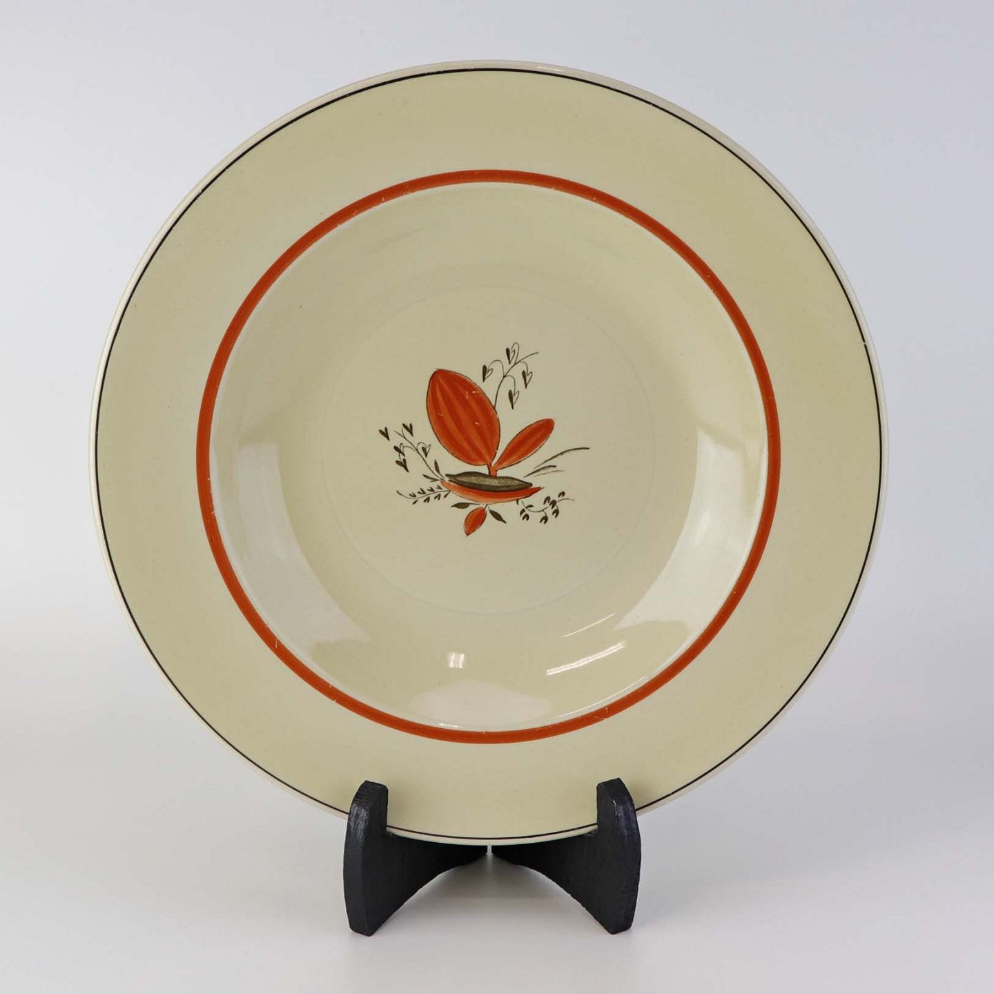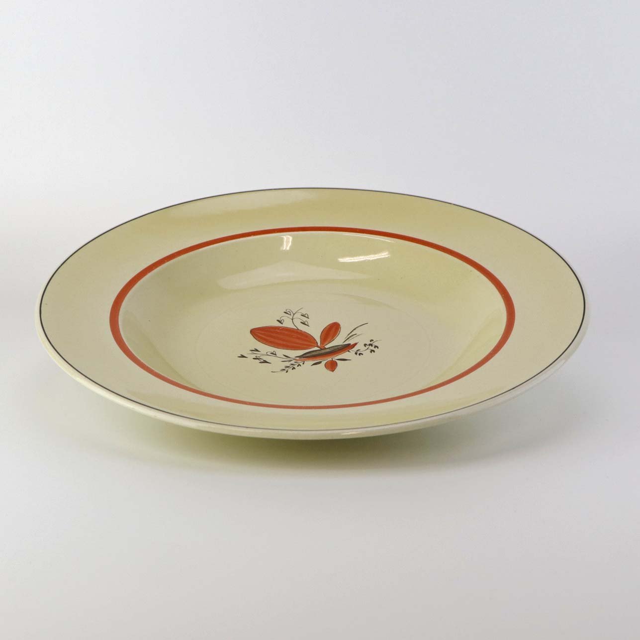 Beskrivelse: Dyb suppetallerken i fajance fra stellet Silkeborg fremstillet i perioden 1937-1939