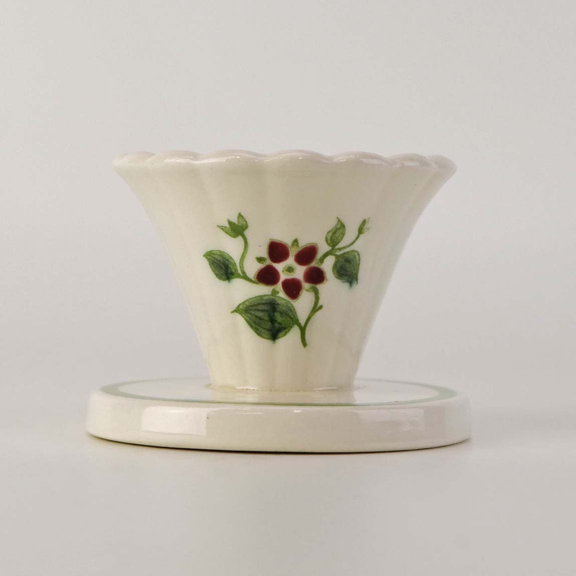 Beskrivelse: Lysestage i fajance fra stellet Flora fremstillet i perioden 1952-1966