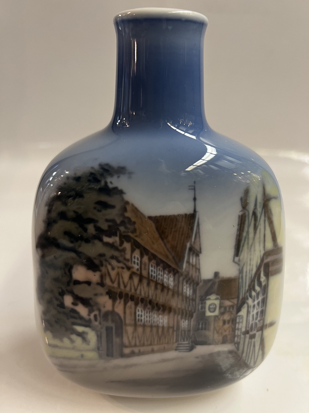 Beskrivelse: Royal Copenhagen Vase, Motiv fra den gamle by