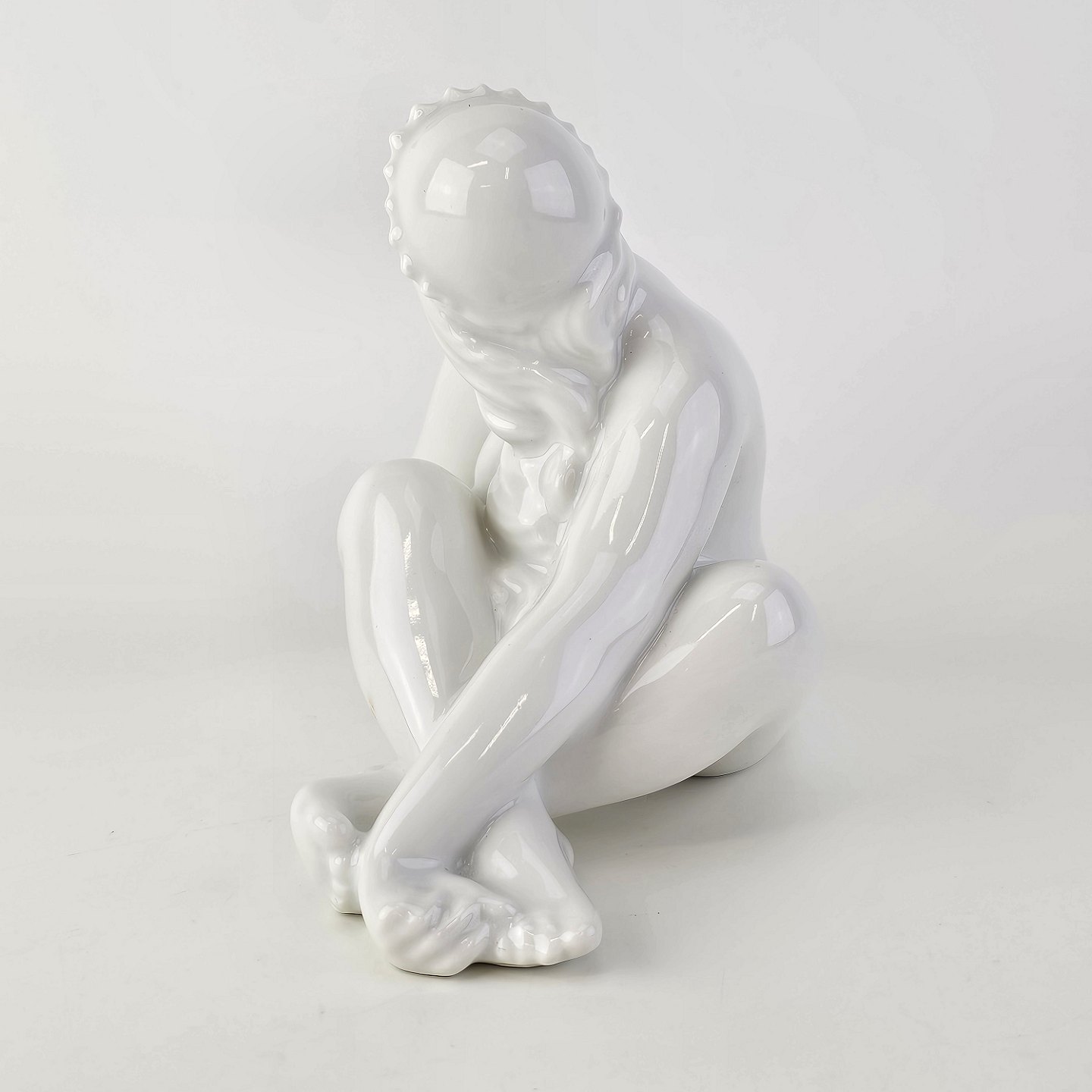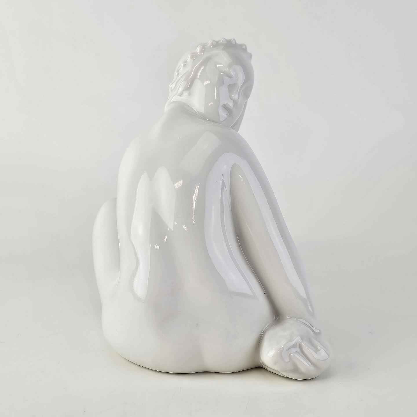 Beskrivelse: Figur i hvidt porcelæn med motiv af en siddende pige
