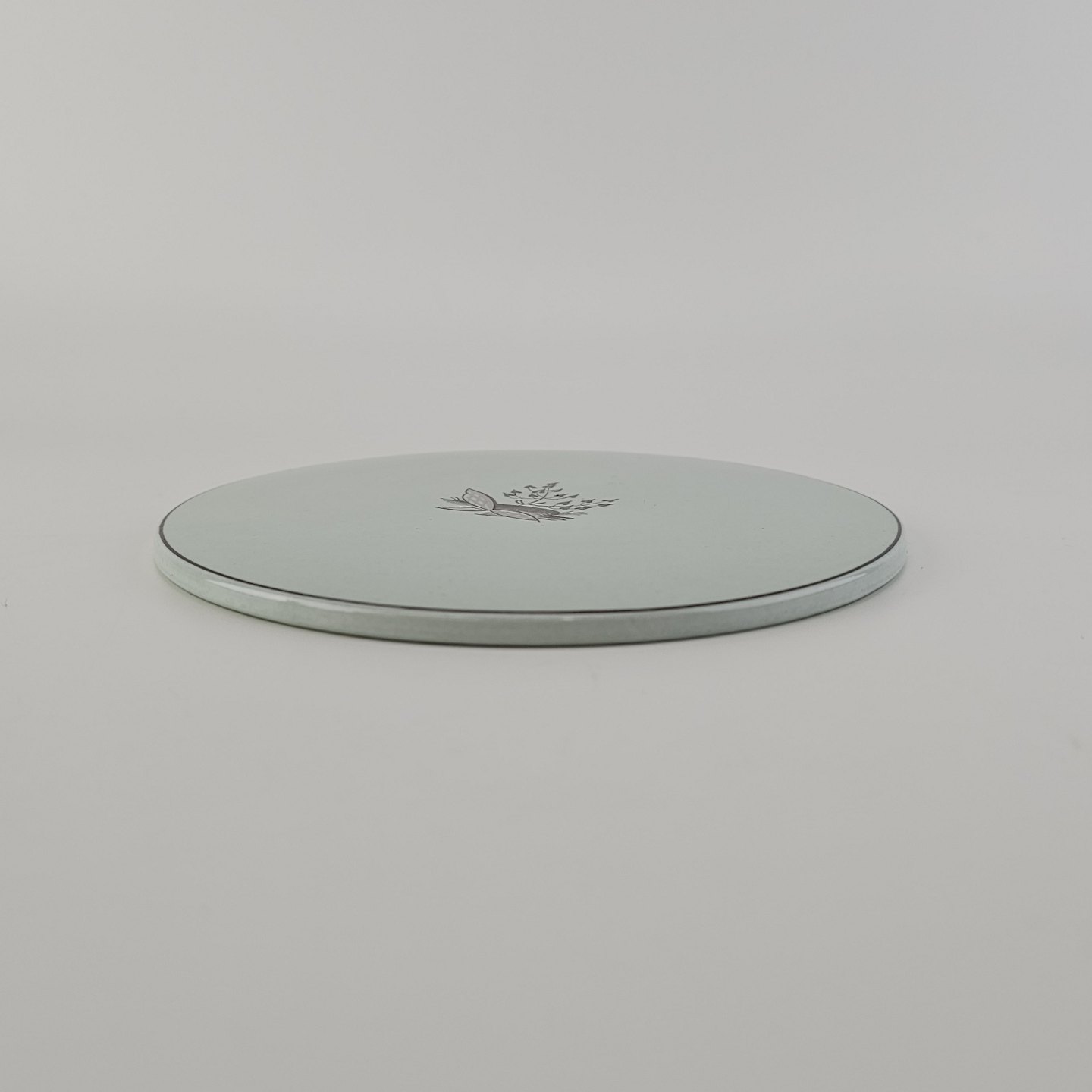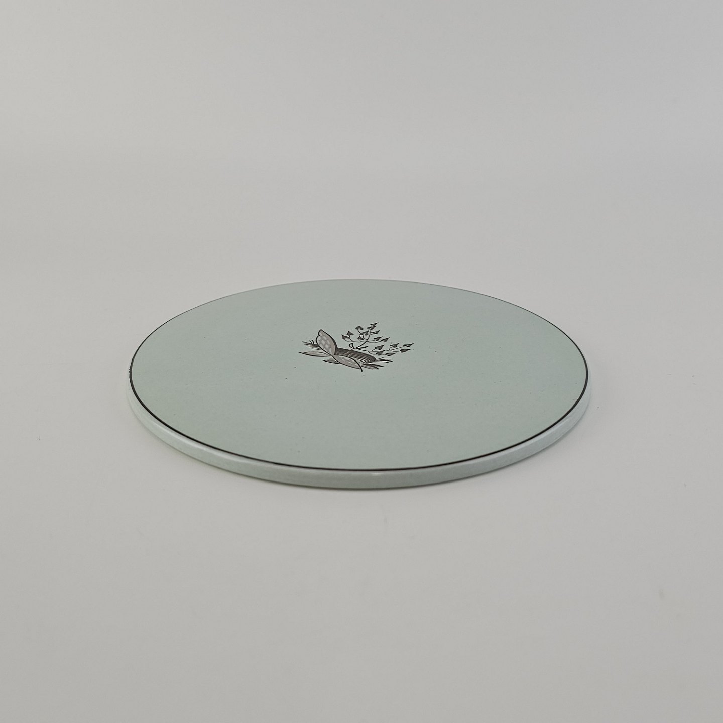 Stel i lysegrøn fajance med natur dekoration og flettet kant