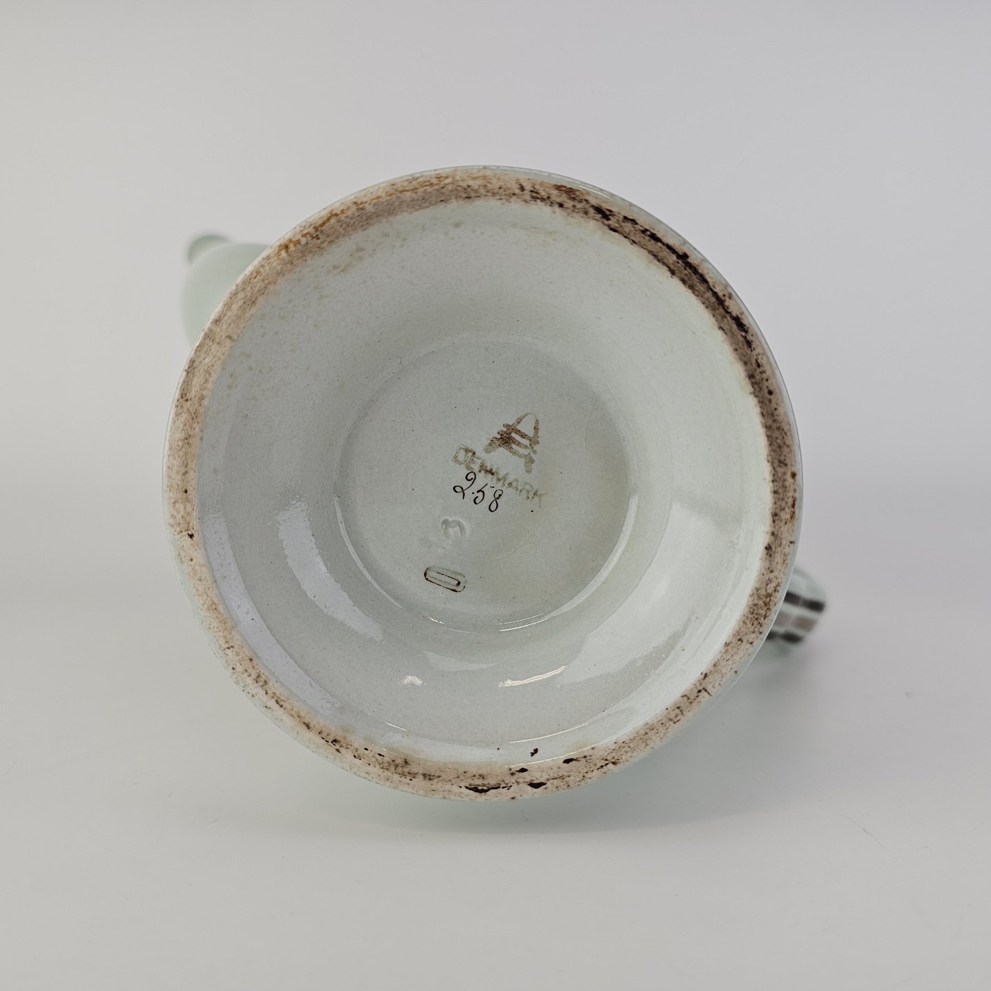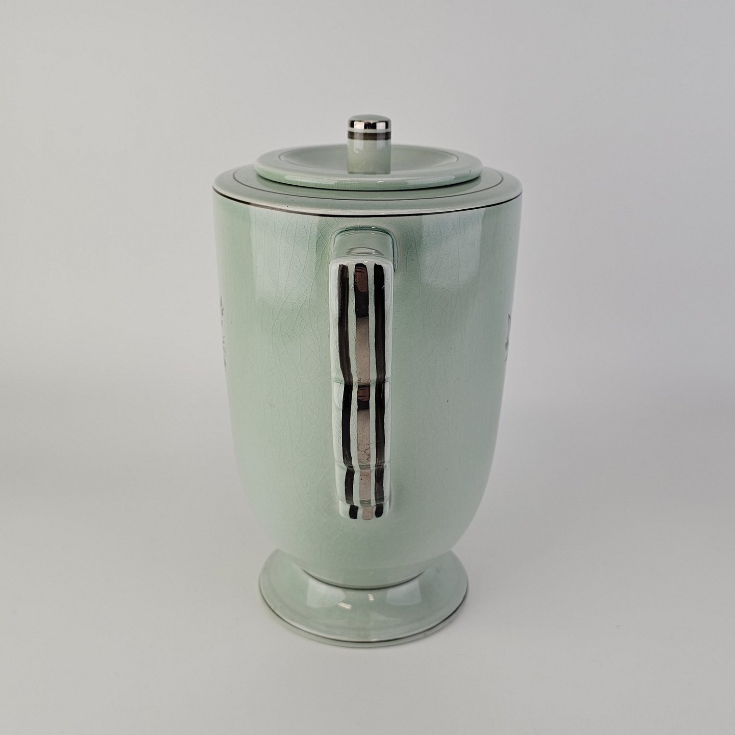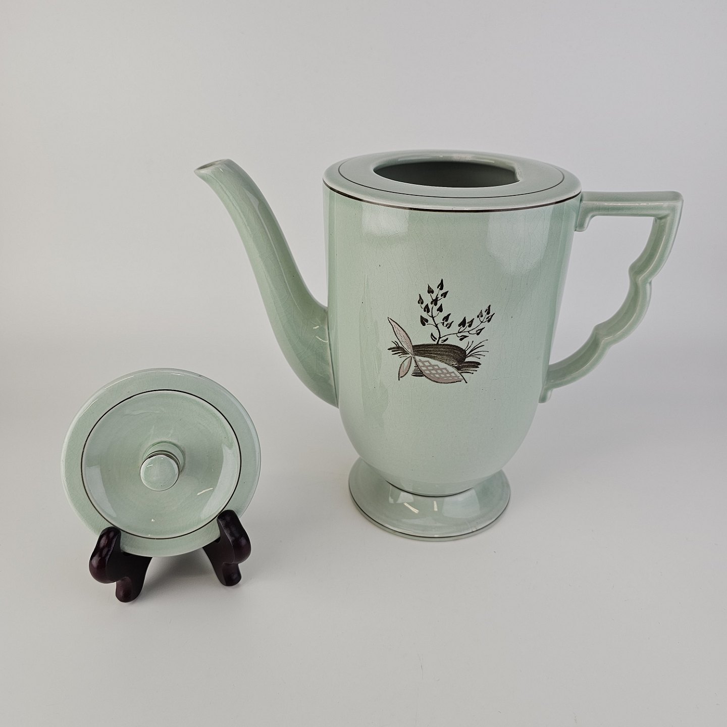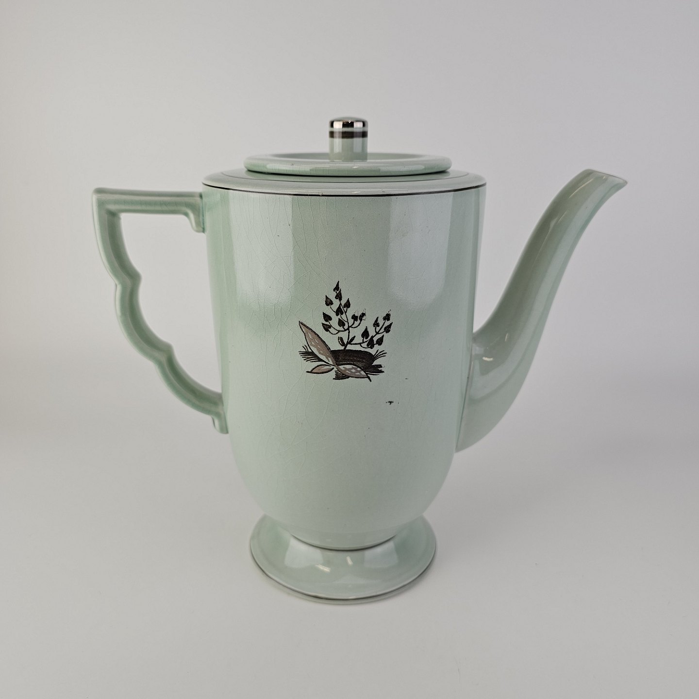 Beskrivelse: Kaffekande med låg i fajance fra stellet Saltholm