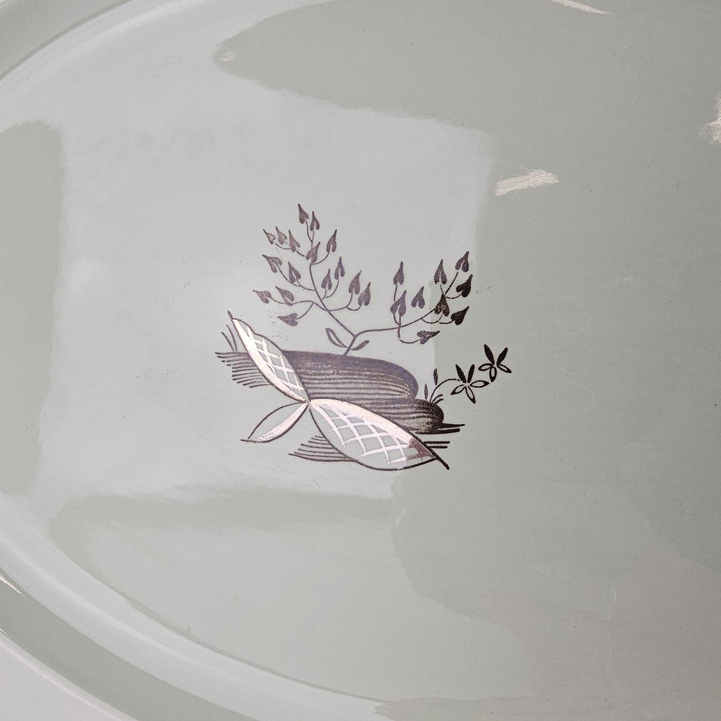Beskrivelse: Ovalt fad i fajance fra stellet Saltholm