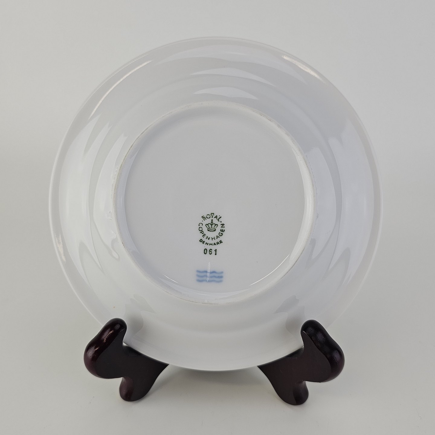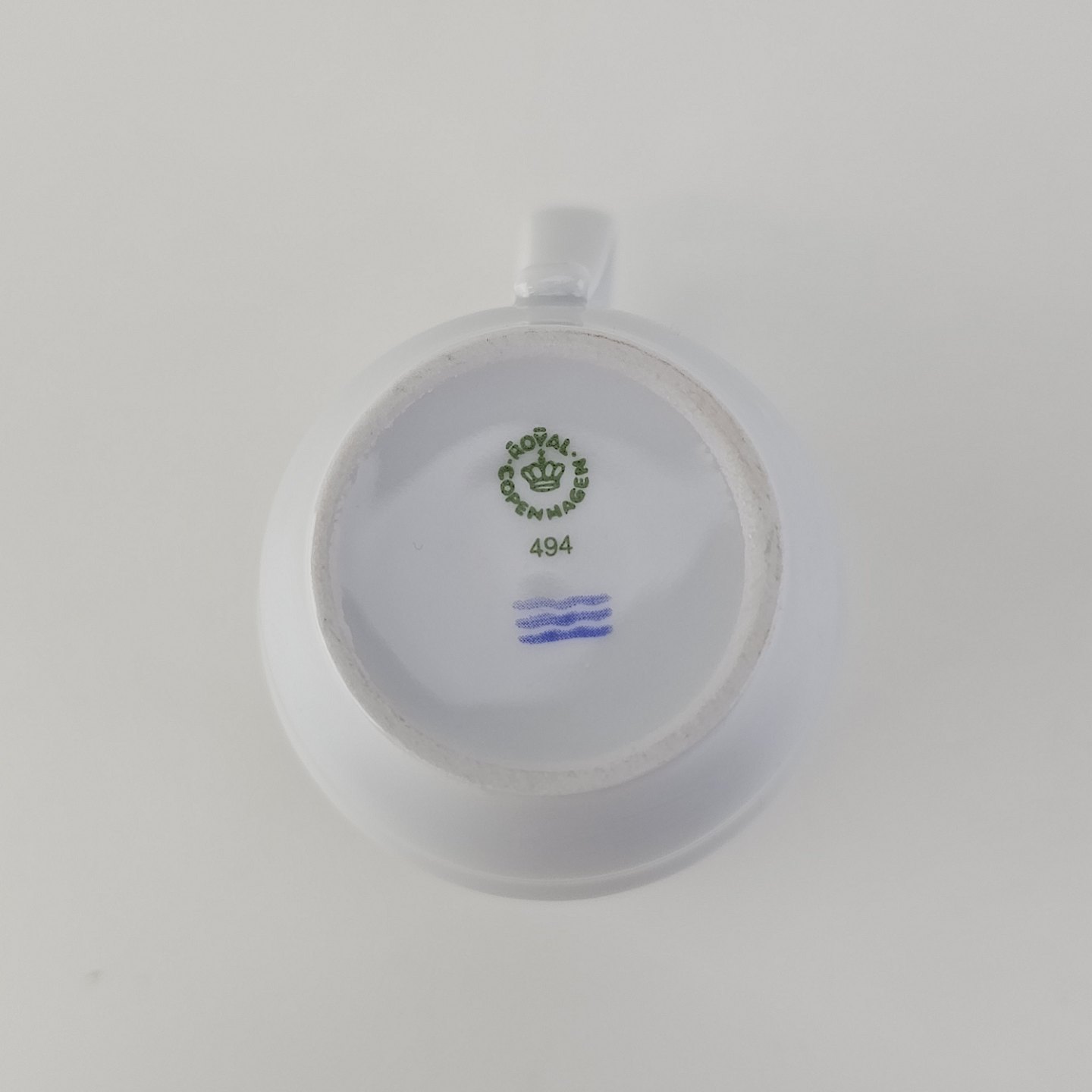 Beskrivelse: Høj kop med underkop i hvidt kongeligt porcelæn