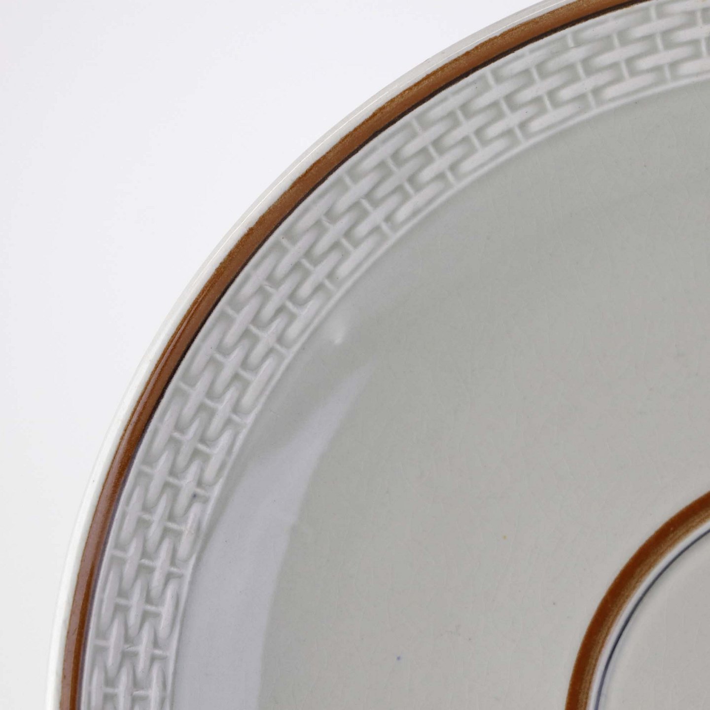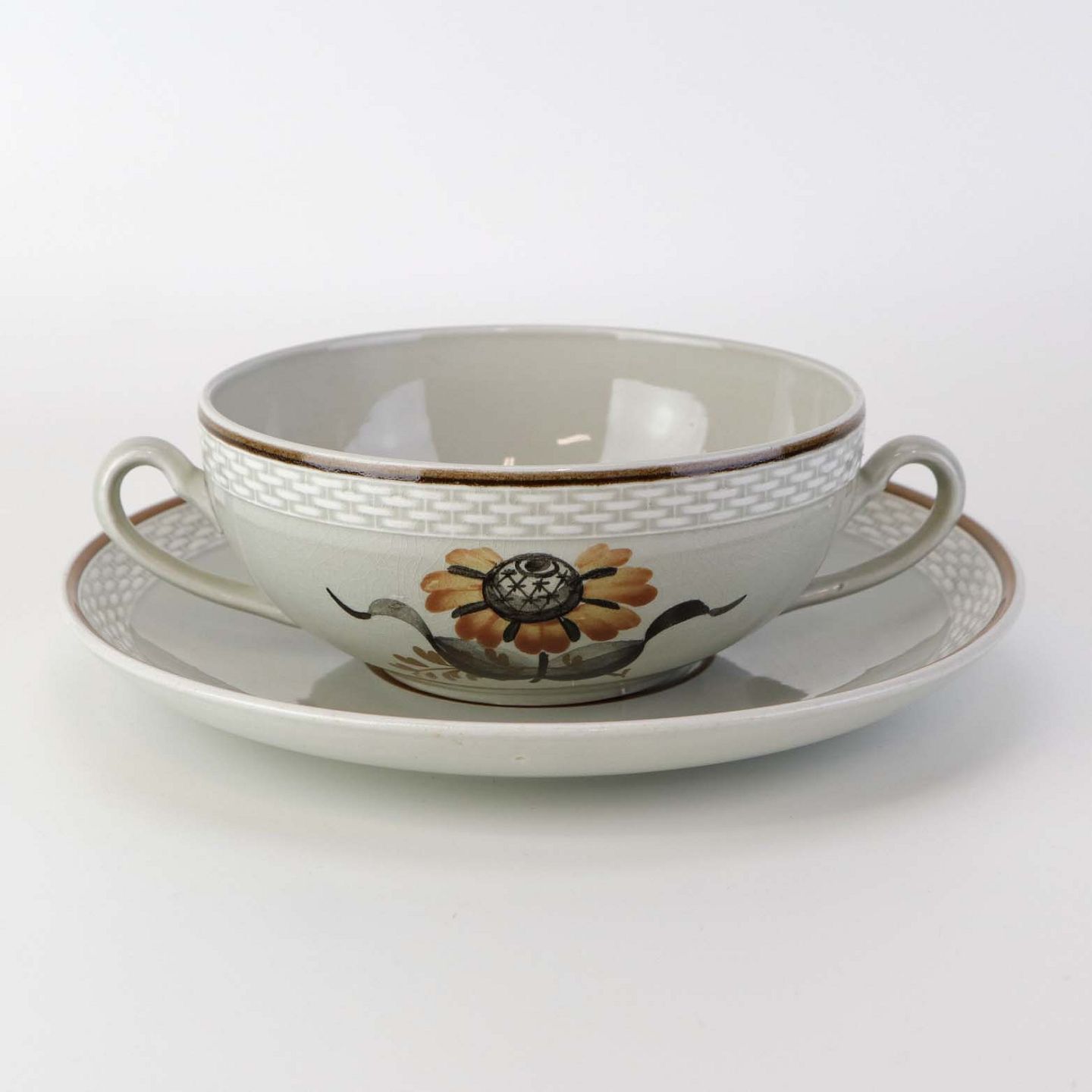 Beskrivelse: Suppekop med underkop i fajance fra stellet Kirsten, som blev fremstillet i perioden 1934-1957. Nr. 263/1633